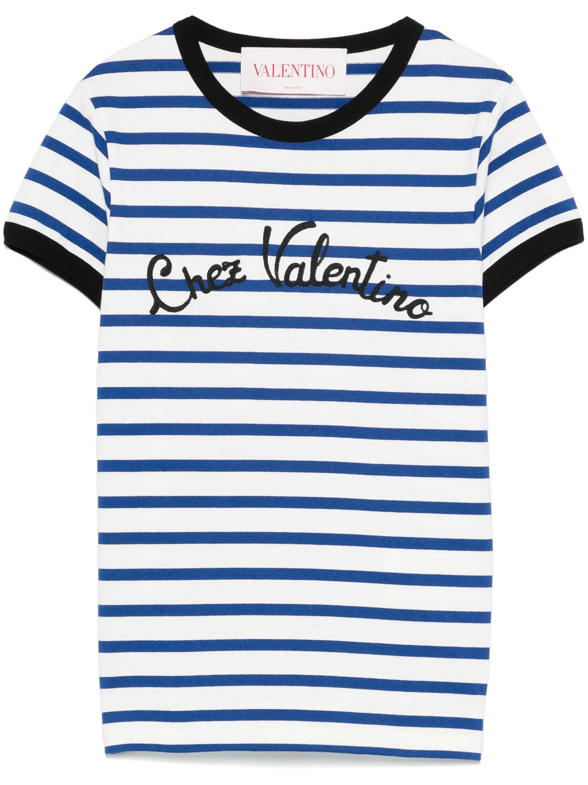 Striped cotton jersey T-shirt with contrast details, front 'Chez Valentino' embroidery, crew neck, and short sleeves