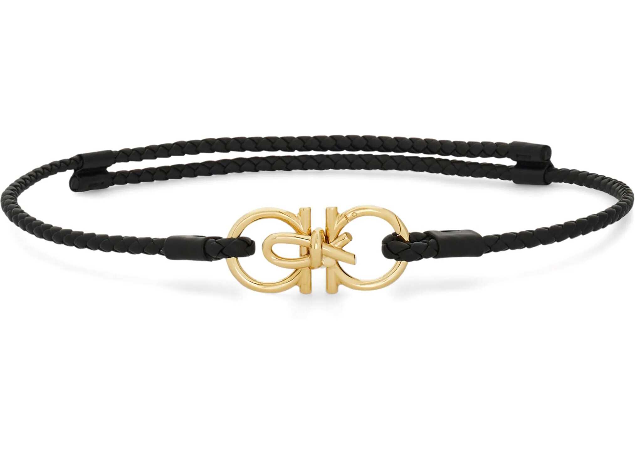 The Ferragamo Gancini Extendable Belt is an elegant and refined accessory that combines the brand's traditional craftsmanship with a touch of modernity. The thin yet durable woven leather model adds a sophisticated texture and an additional visual dimension, perfect for accompanying any type of outfit. The iconic gold Gancini logo on the front not only recalls the brand's emblem, but also enhances its elegance, while the addition of the small gold bow provides a delicate and feminine detail, making the belt even more unique.