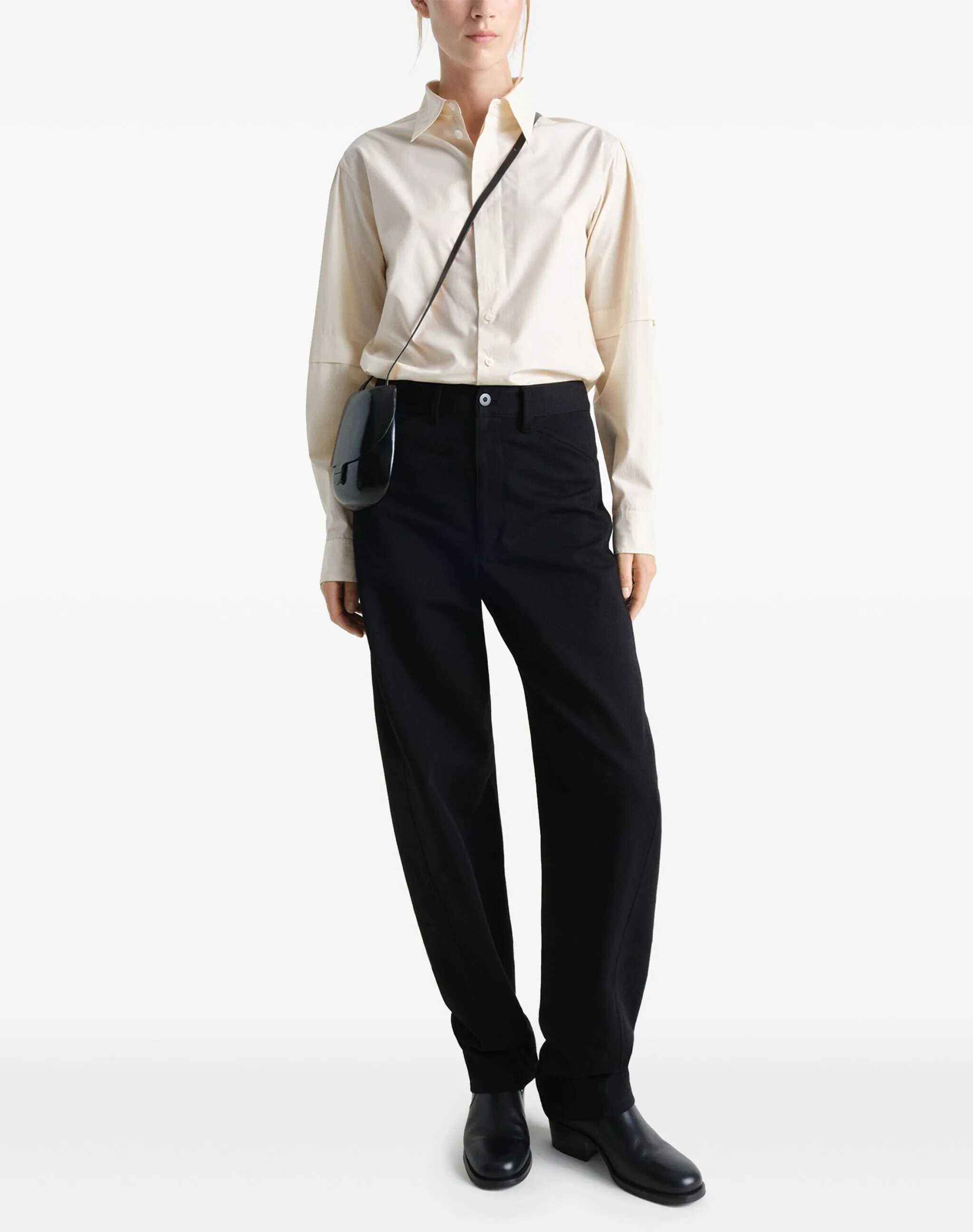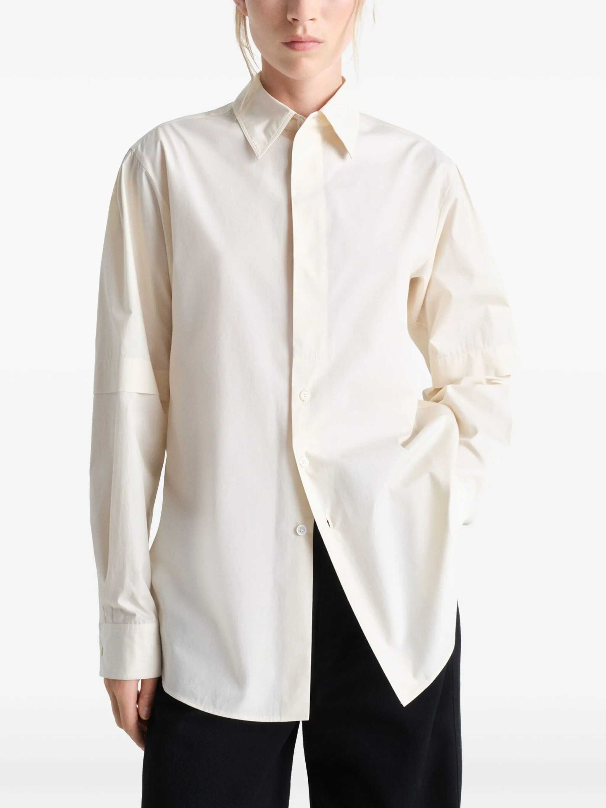 The Lemaire Cotton Shirt is an elegant and refined piece, perfect for those looking for a minimalist style with a touch of originality. The pointed collar gives it a classic silhouette, while the front button closure maintains a clean and sophisticated design. The slits on the sleeves add a distinctive and modern accent, which makes this shirt unique without being excessive.