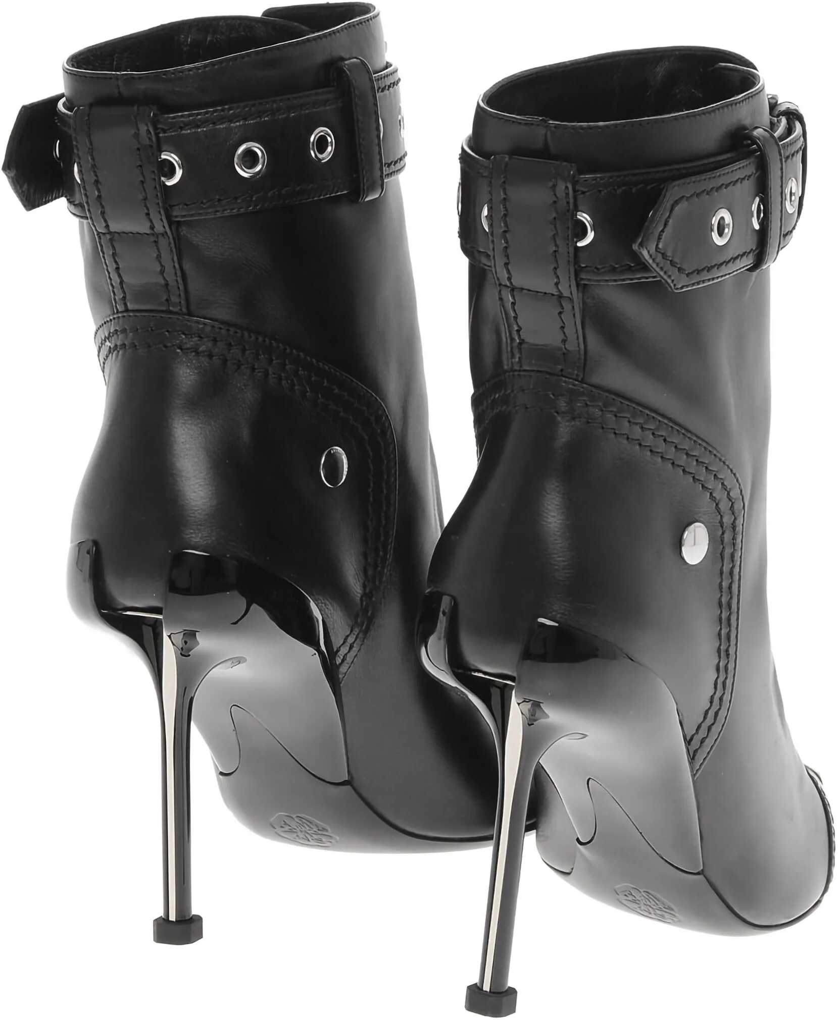 Heel Height: 10cm, Leg Width: 11cm Leather Buckles Buckle fastening at ankle Zip Leather sole Narrow toeline Stiletto heels Black Made in Italy Spring-Summer WOMEN'S DAY Materials: 100%CALFSKIN + 100%CUIR Product code: P641227