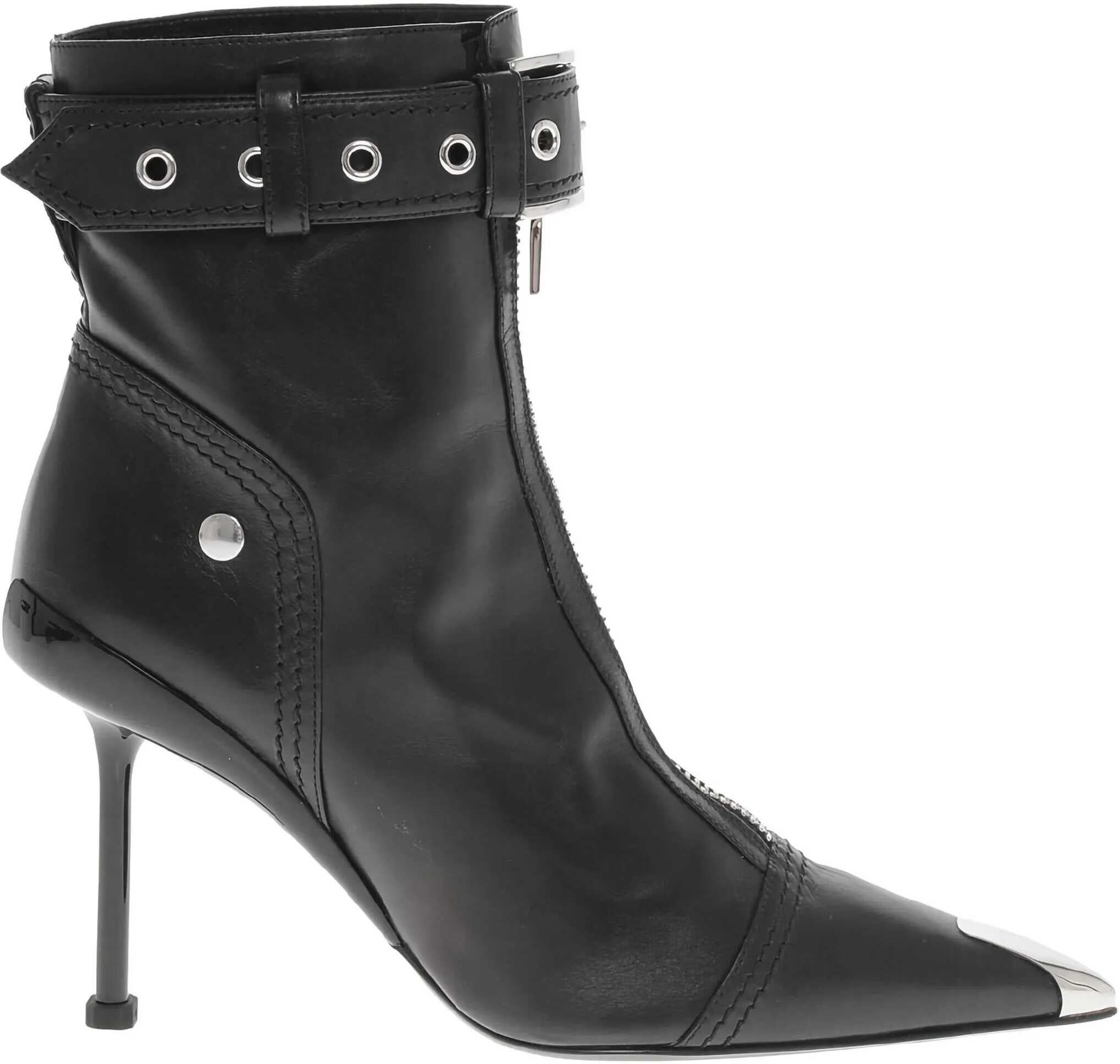 Front Zipped Leather Booties With Stiletto Heel 10Cm