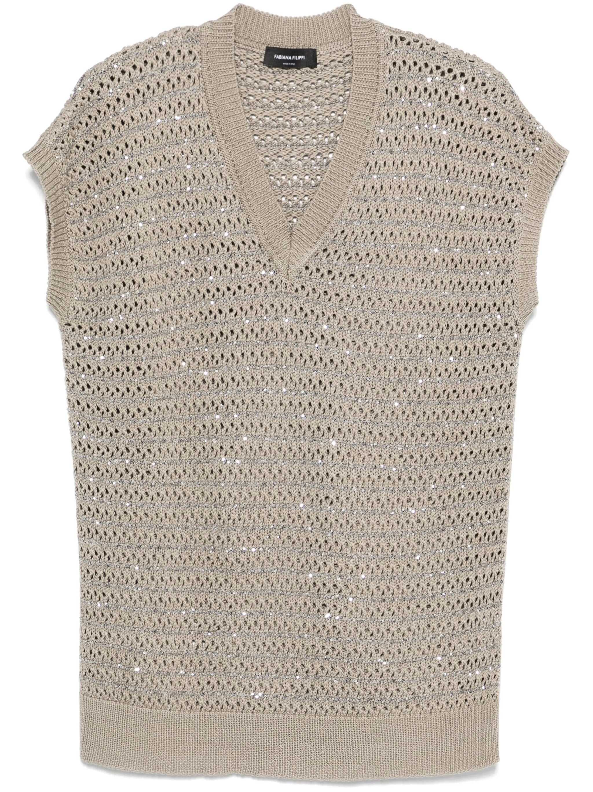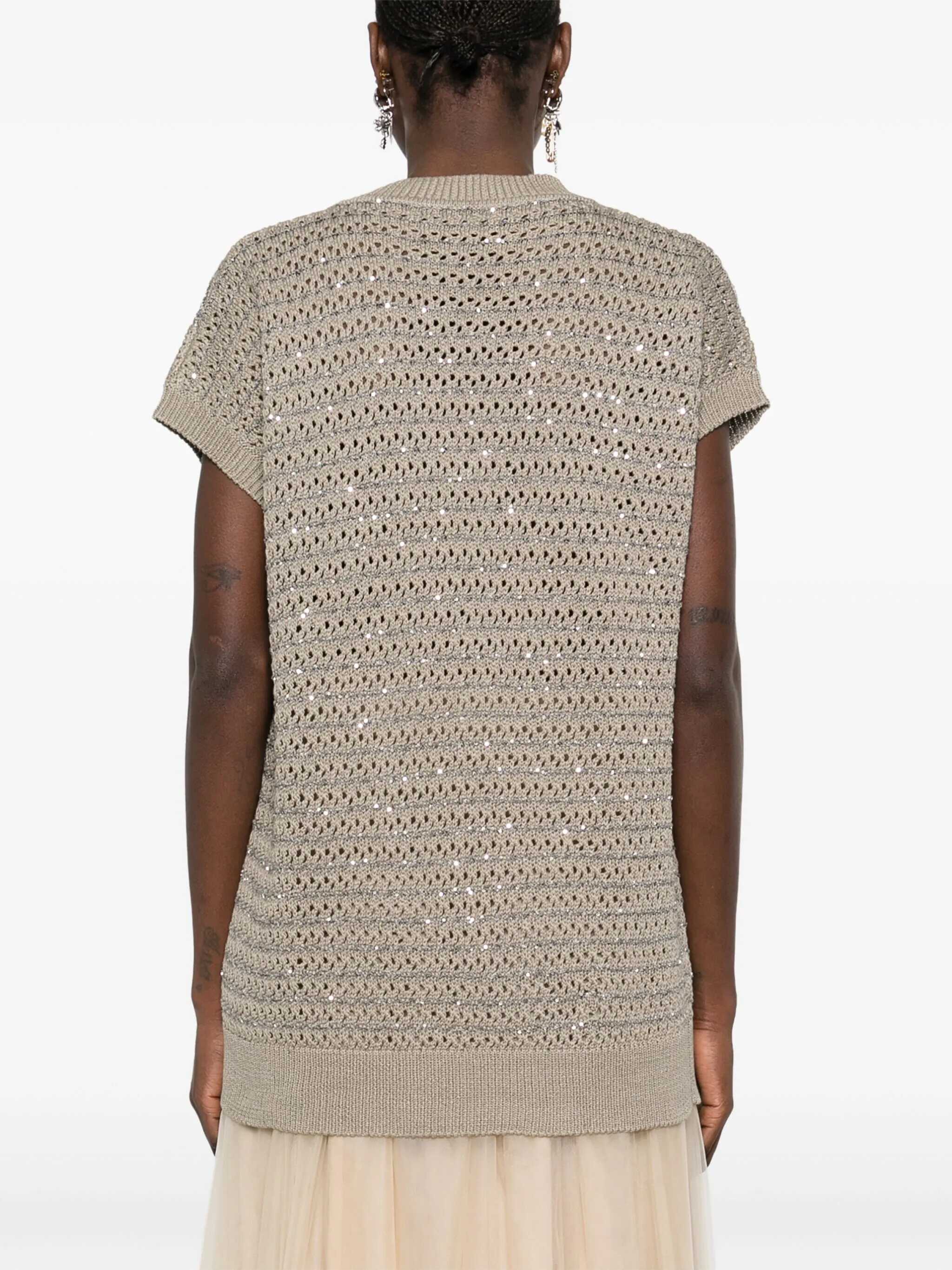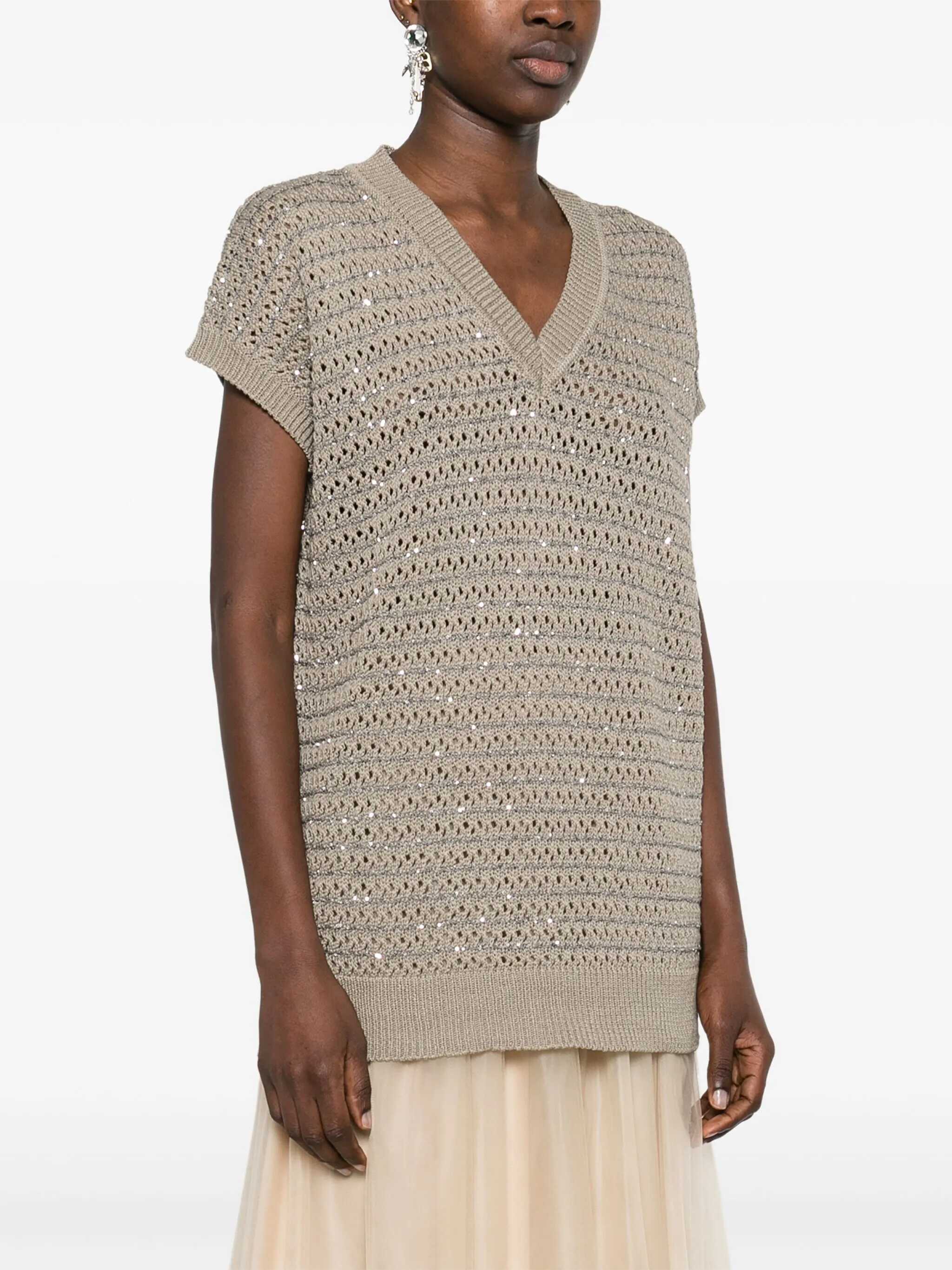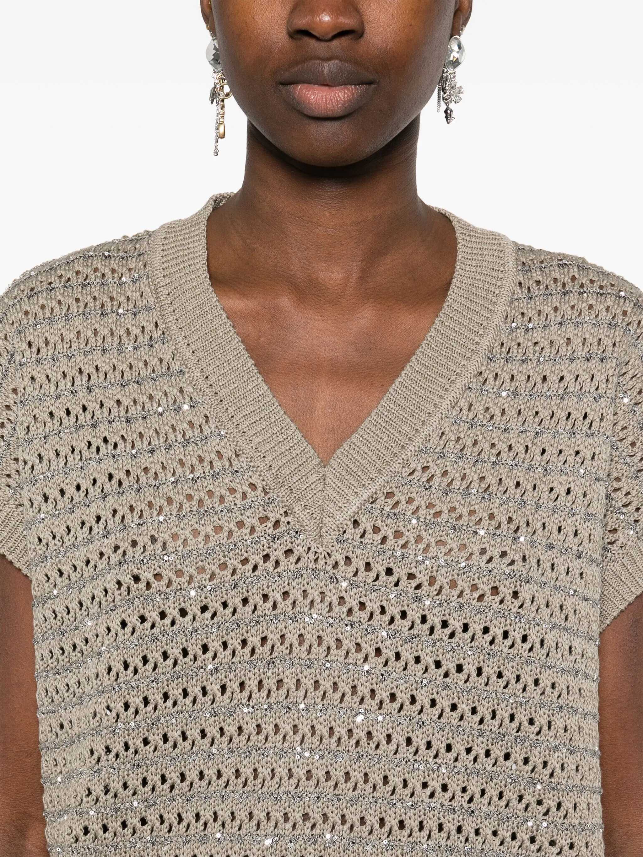 SEQUIN STRIPED CROCHET V NECK CAPE SLEEVE SWEATER