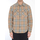 Check fabric overshirt in a cotton and linen blend. It features a pointed collar, a front button closure, two patch pockets with flaps and buttons on the chest, buttoned cuffs, a curved hem, and an internal welt pocket.