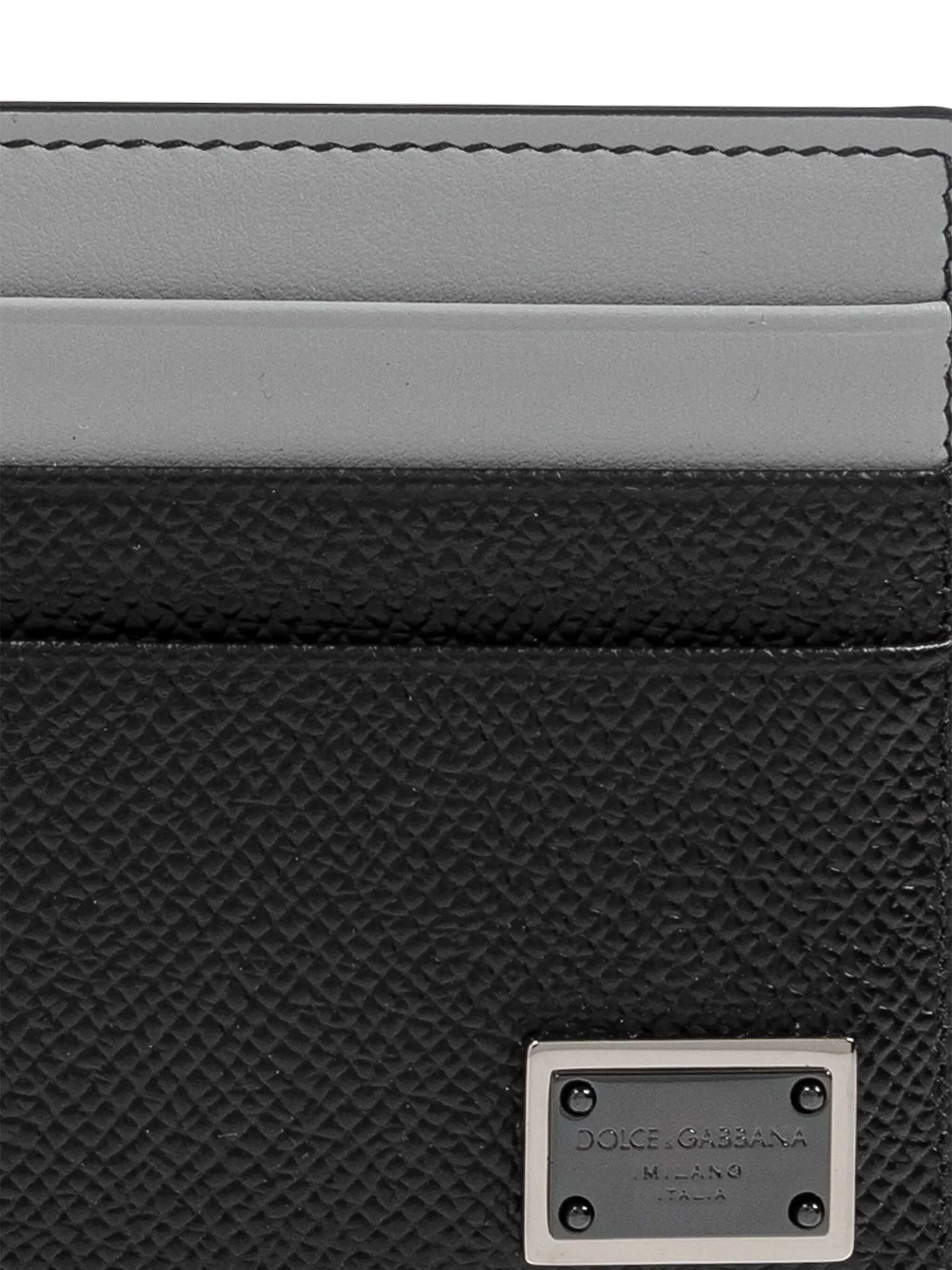 Dauphine print calfskin card holder Black/blue color Ruthenium galvanized metal logo tag Six credit card slots and a flat pocket Measurements: Height 11.5cm Width 8.5cm Depth 0.5cm