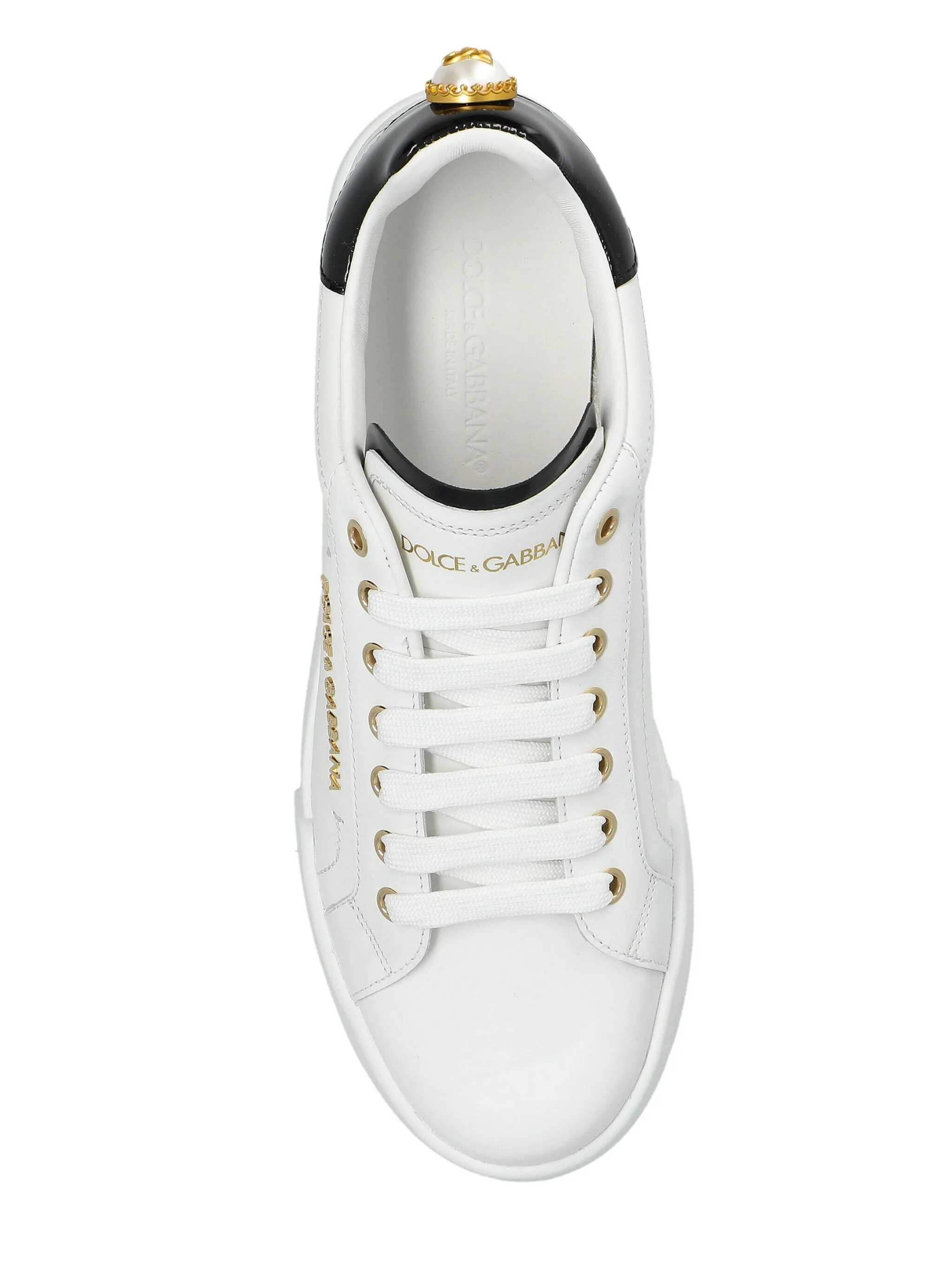 'Portofino' sneakers in napped calf leather, side metal lettering logo, contrasting heel in shiny leather with logo pearl application, laces, rubber sole