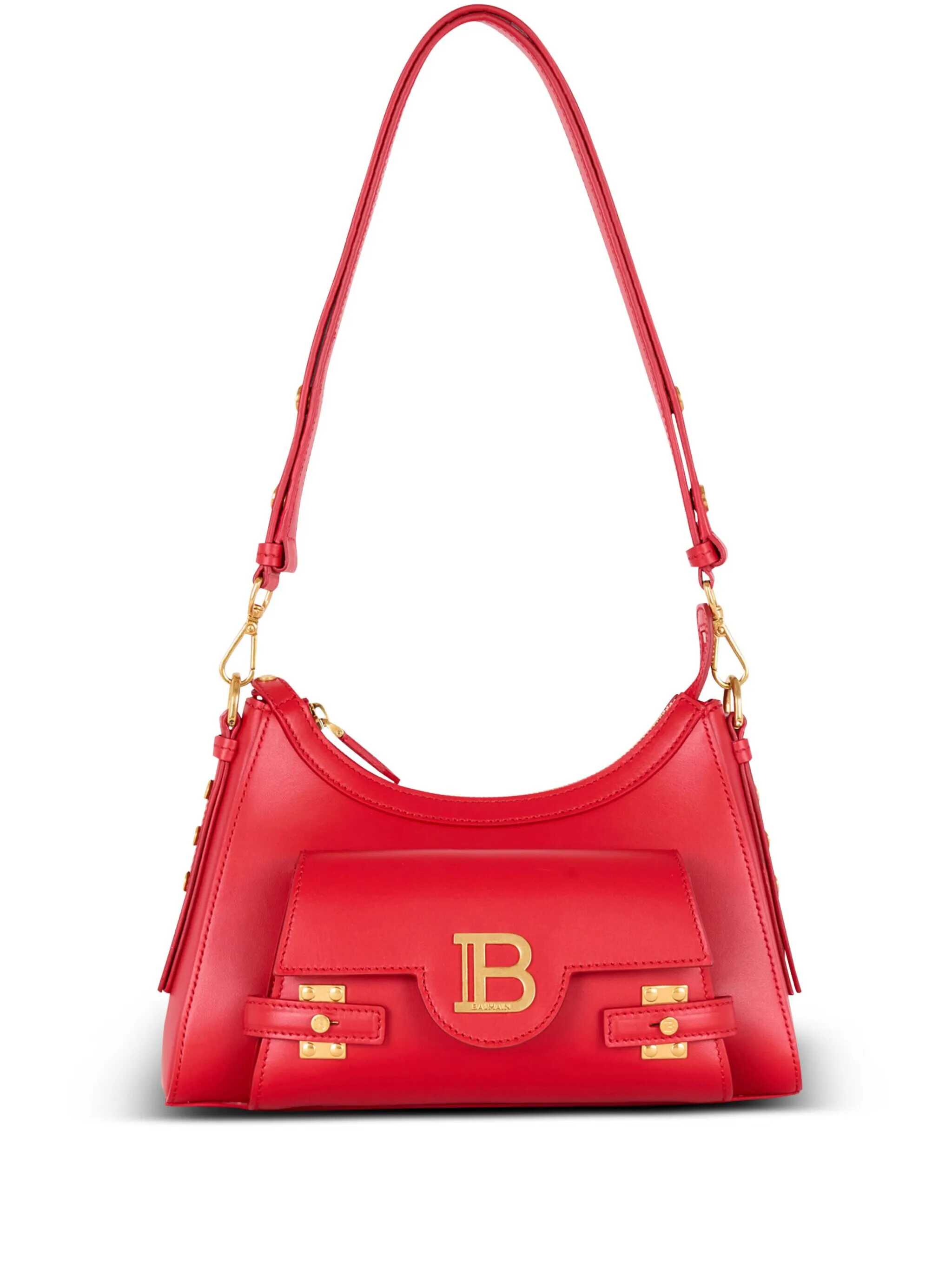 Hand, shoulder and crossbody leather bag Red color Double leather handle, adjustable with snap hooks and B snap buttons Flap pocket with B-Twist magnetic closure Side studded B buttons Zip closure Internal leather pocket and card holder Velvet effect lining Vintage gold metal details Dimensions: Width 28cm Depth 7cm Height 15cm Main material: 100% calfskin