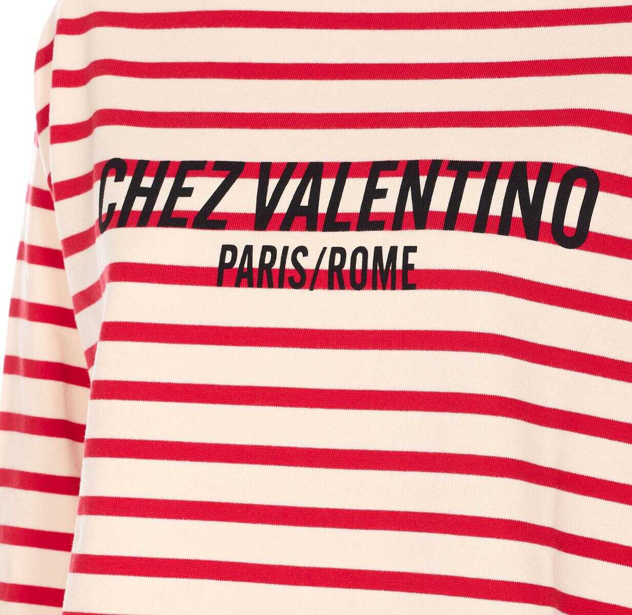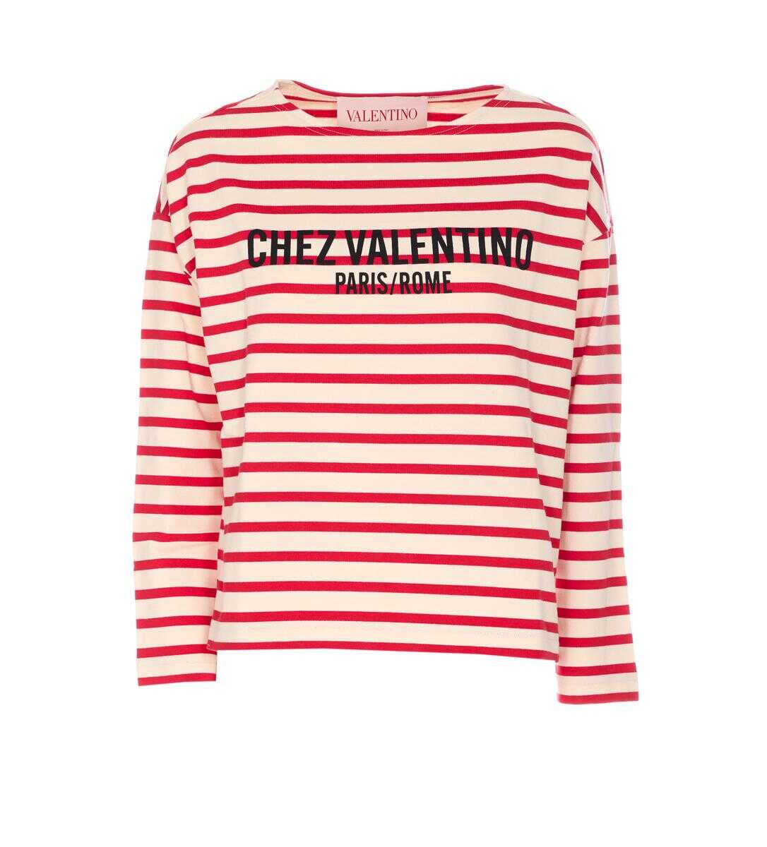 Valentino Beige And Red Striped Logo Patterned Logo On The Front, Crewneck, Striped, US SIZE