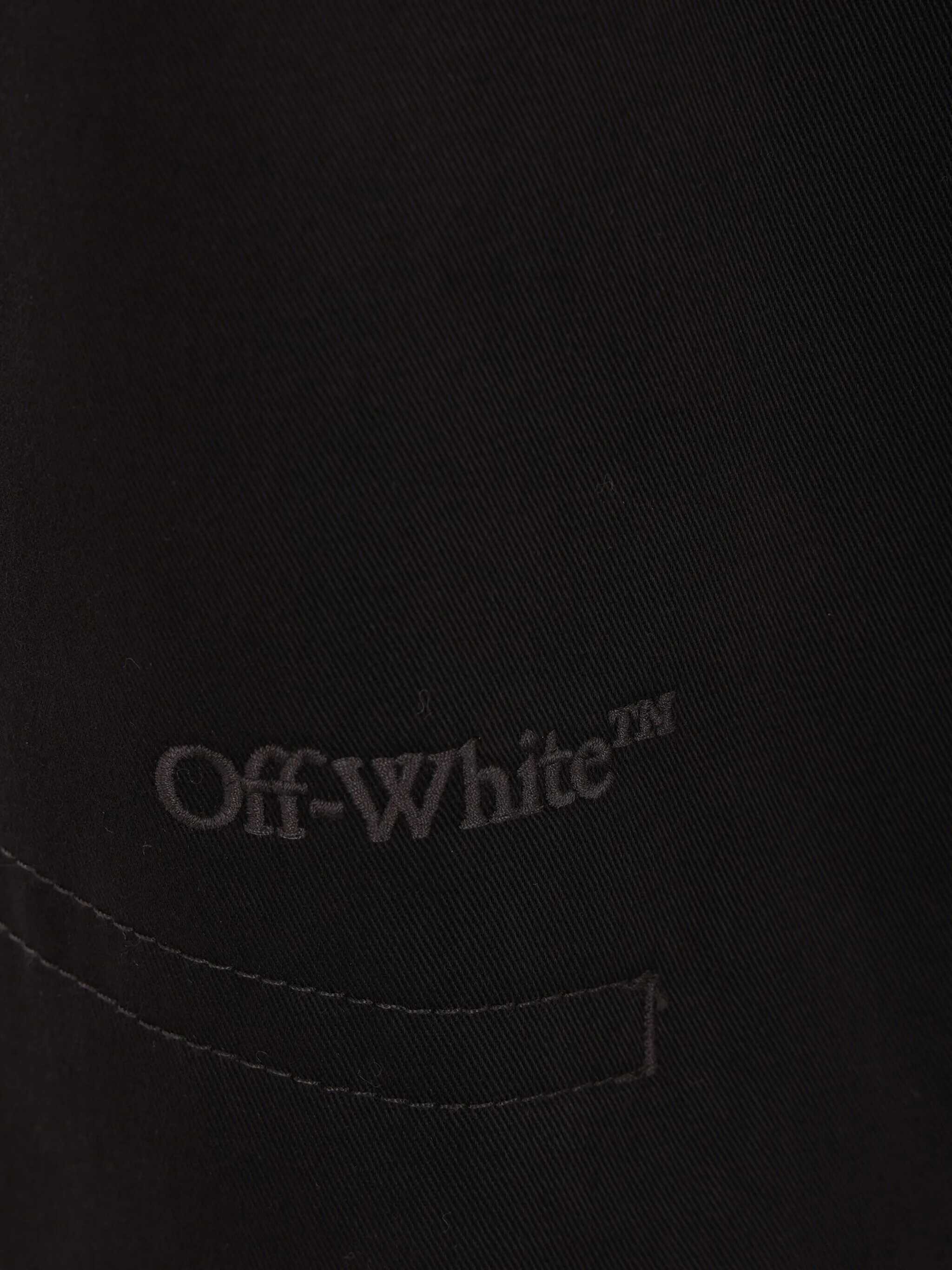 Off White shorts made of black cotton gabardine. Featuring a front closure with hook/button/zip, belt loops, multiple pockets and tonal logo embroidery on one side.