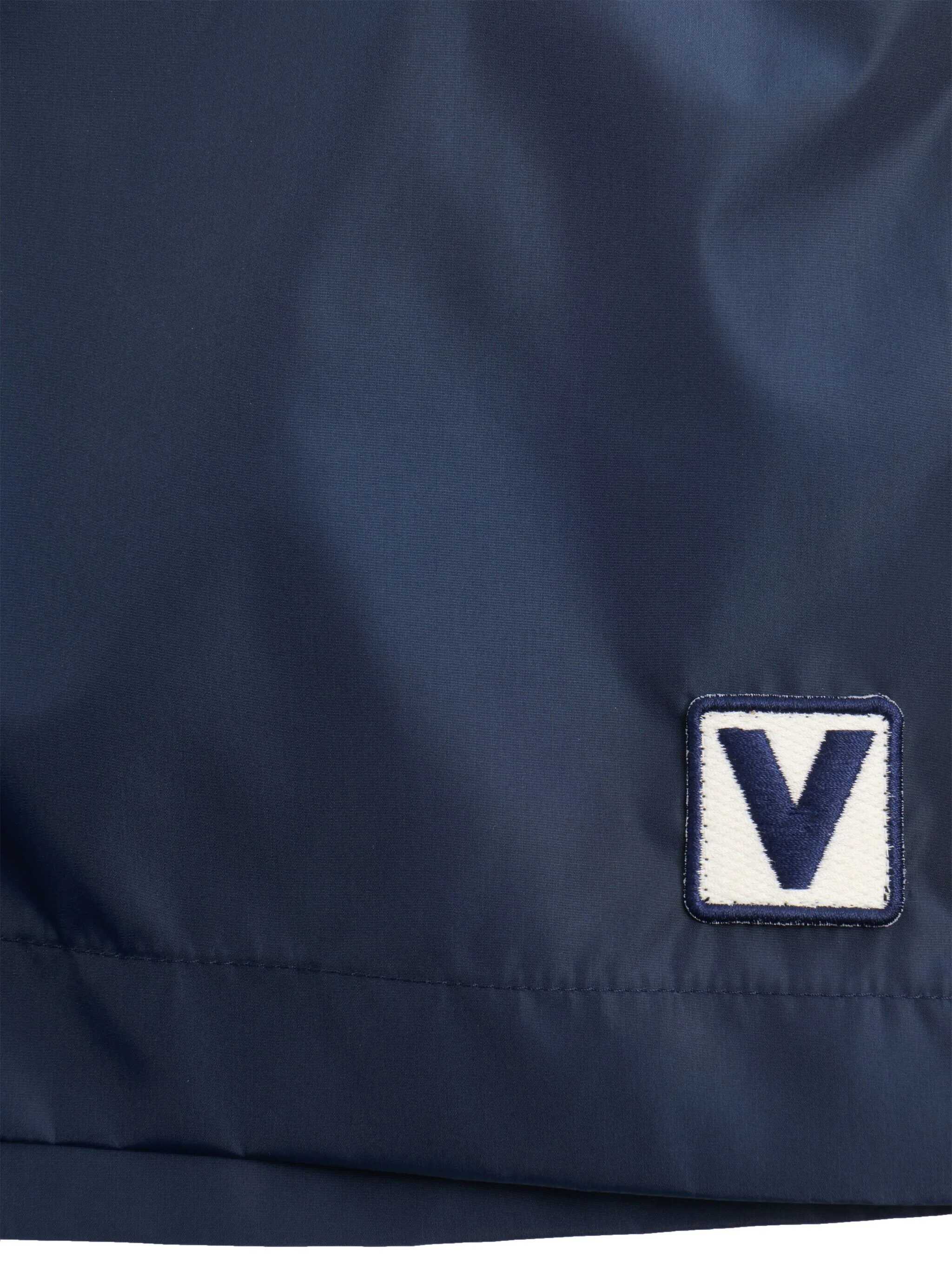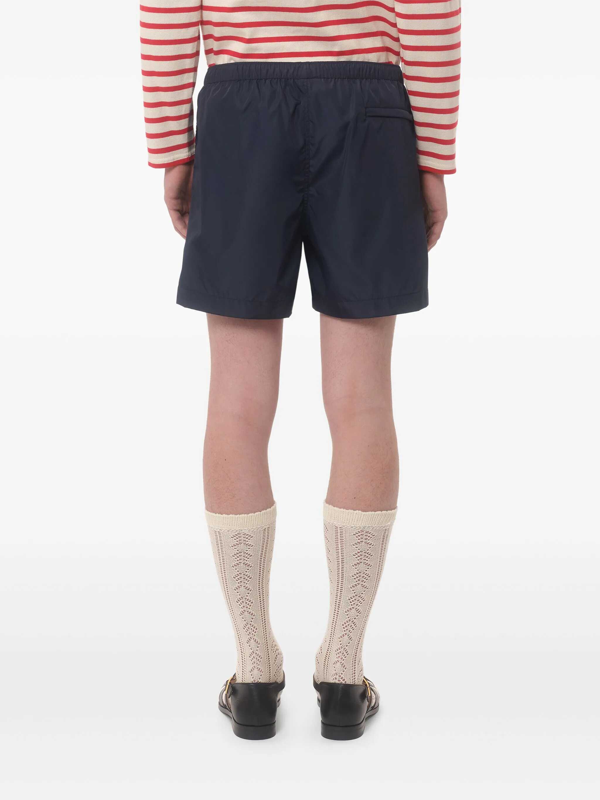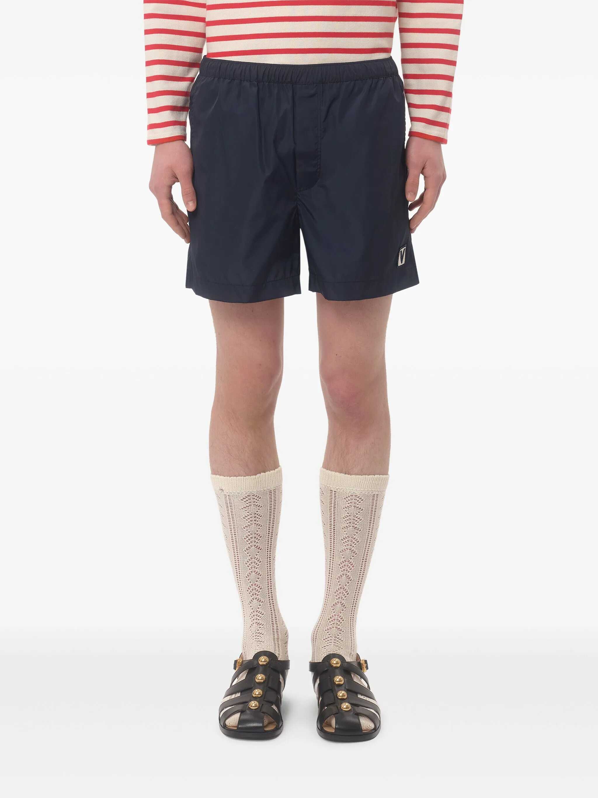 Nylon swimsuit with front 'Chez Valentino' patch, adjustable drawstring elastic at the waist, pockets, trompe l'oeil flap, inner mesh briefs