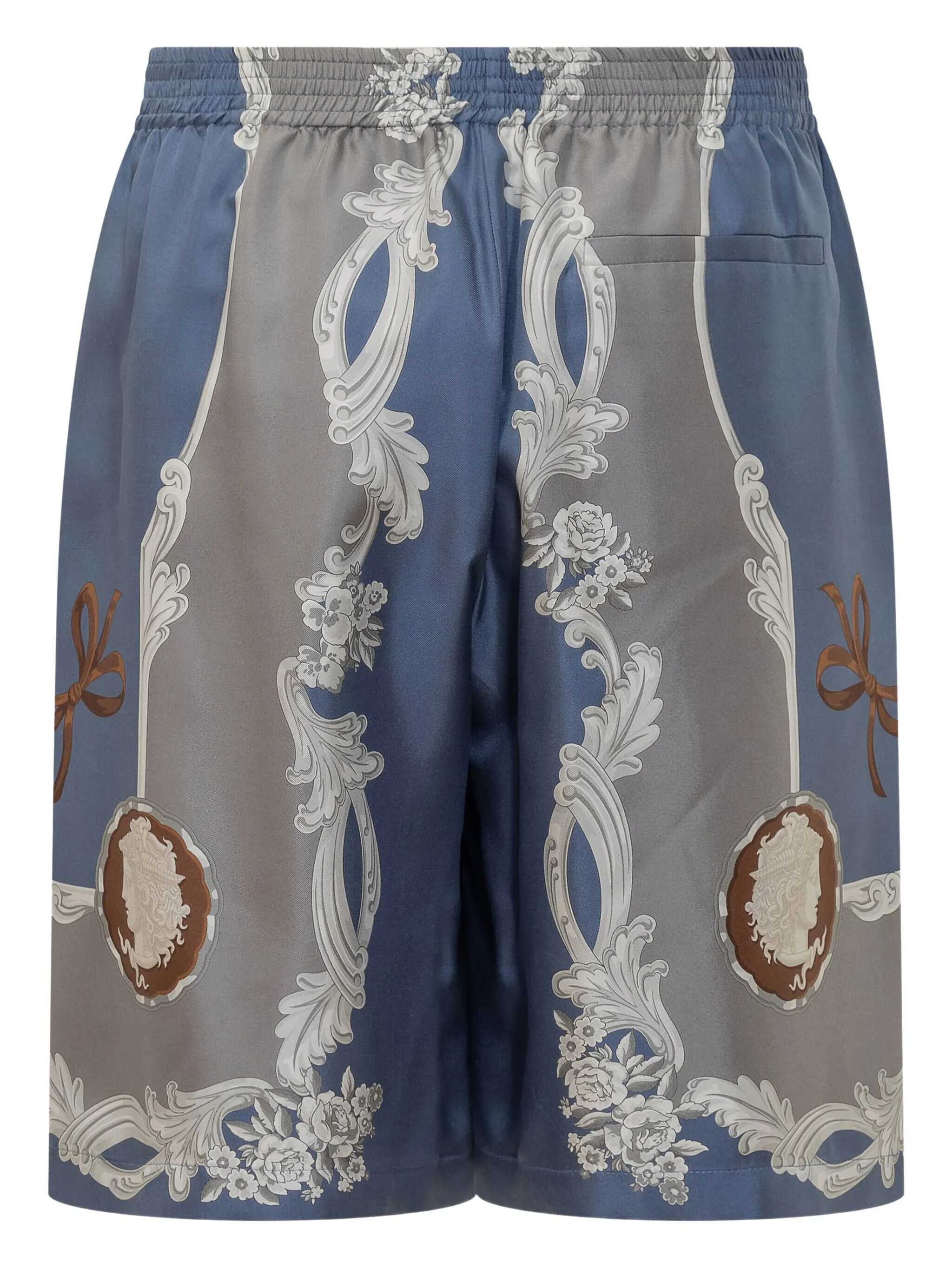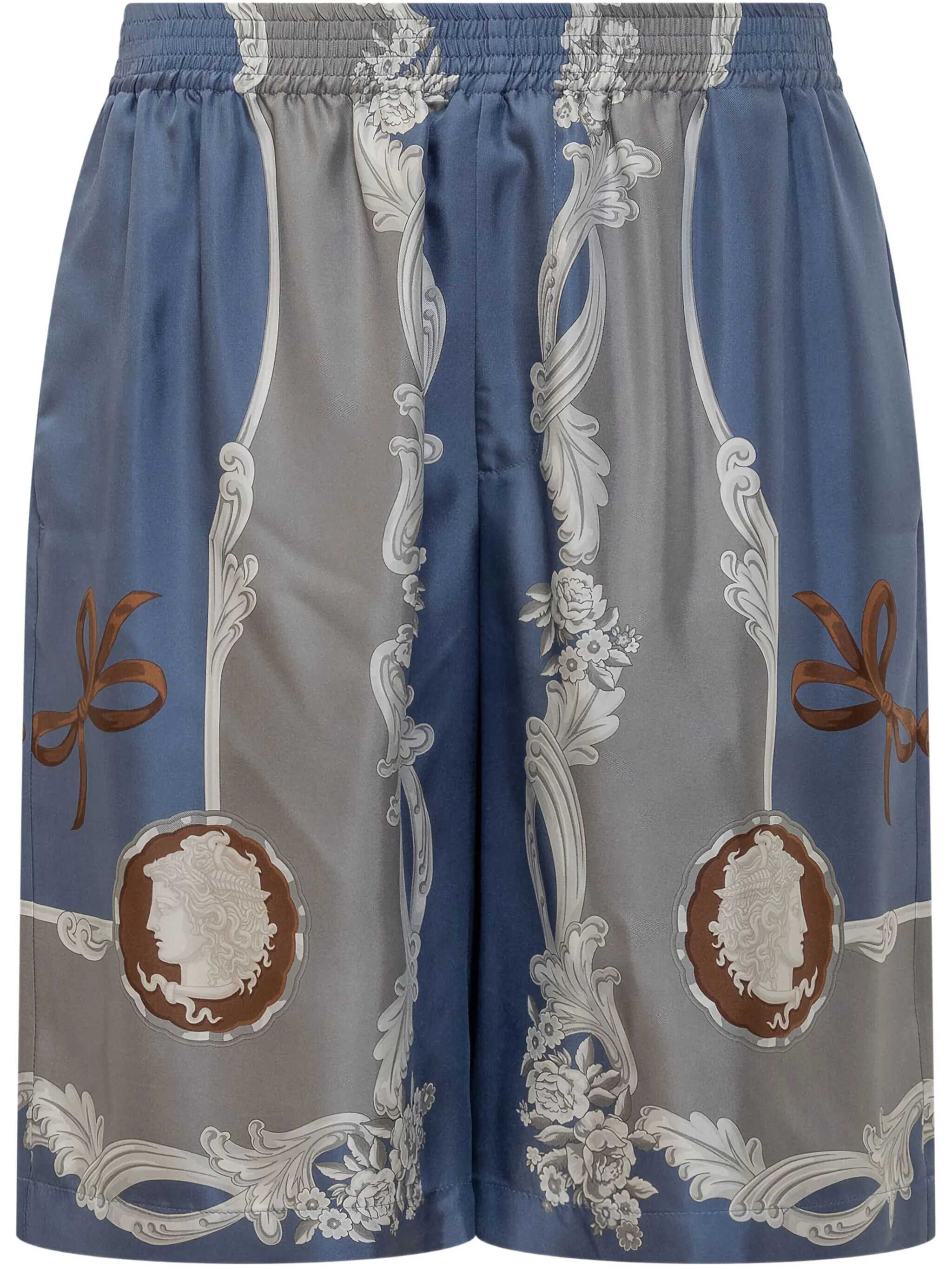 Medusa Cameo print. Side pockets. Back welt pocket. Elasticized waistband.