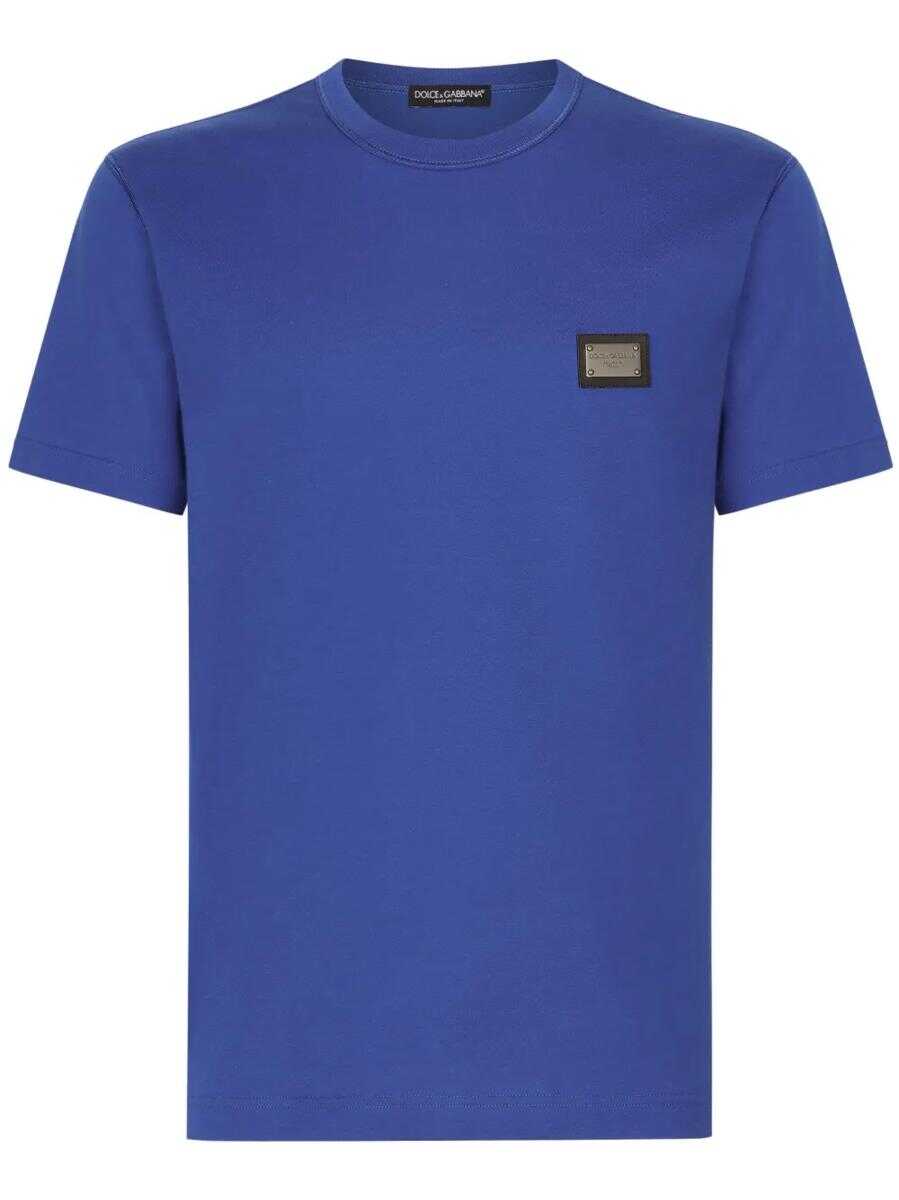 Italian brand Dolce & Gabbana enriches this short-sleeved T-shirt with a logo plaque on the chest. Crafted in a vibrant blue hue, this detail adds a branded touch to the laid-back look.