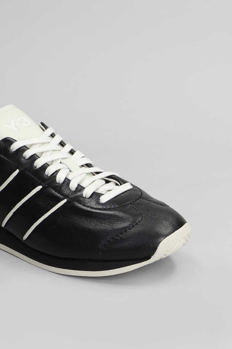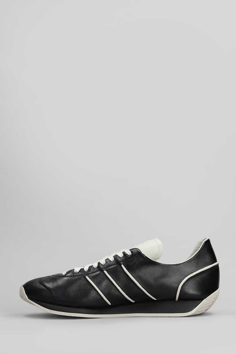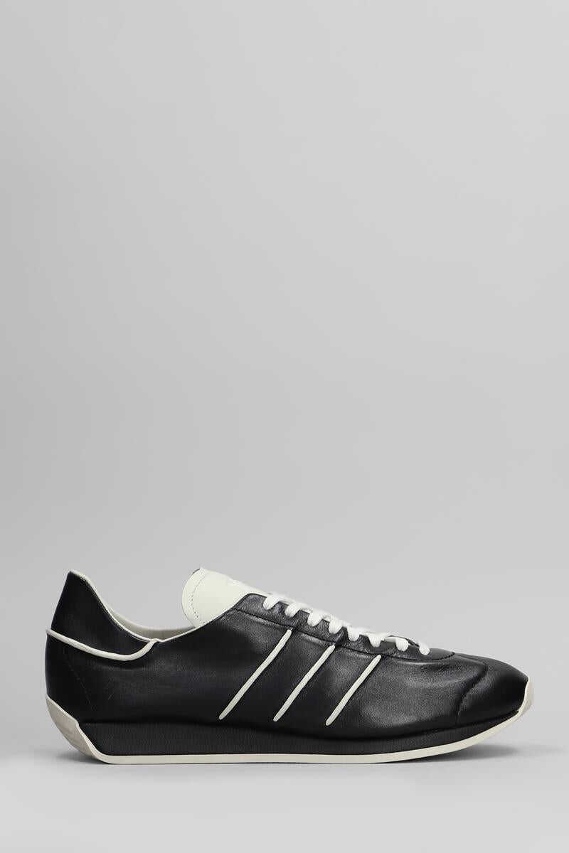 Country Sneakers in black leather, round toe, laces, side bands, engraved logo, rubber sole, contrast hem, 100% leather, Made in China
