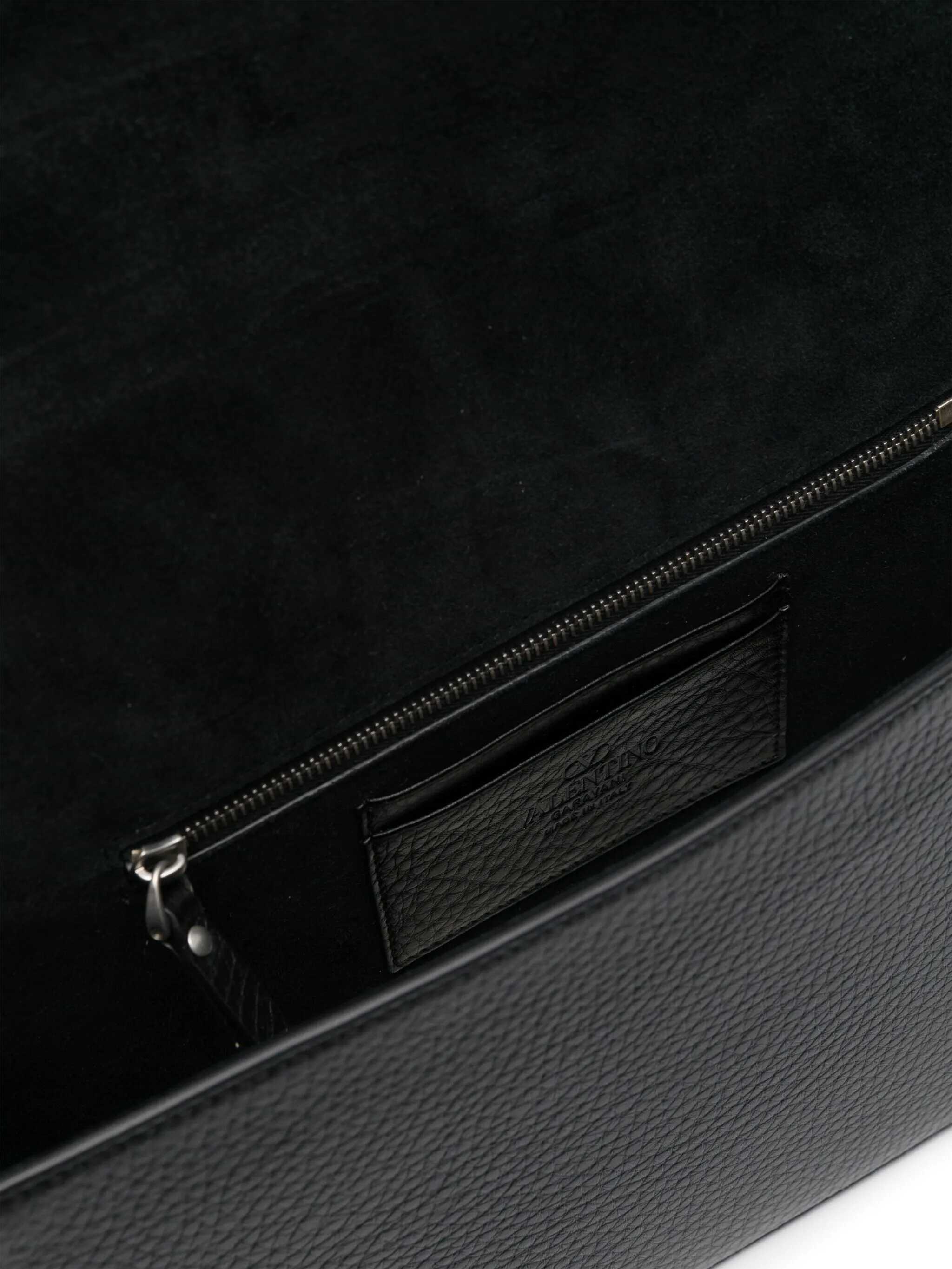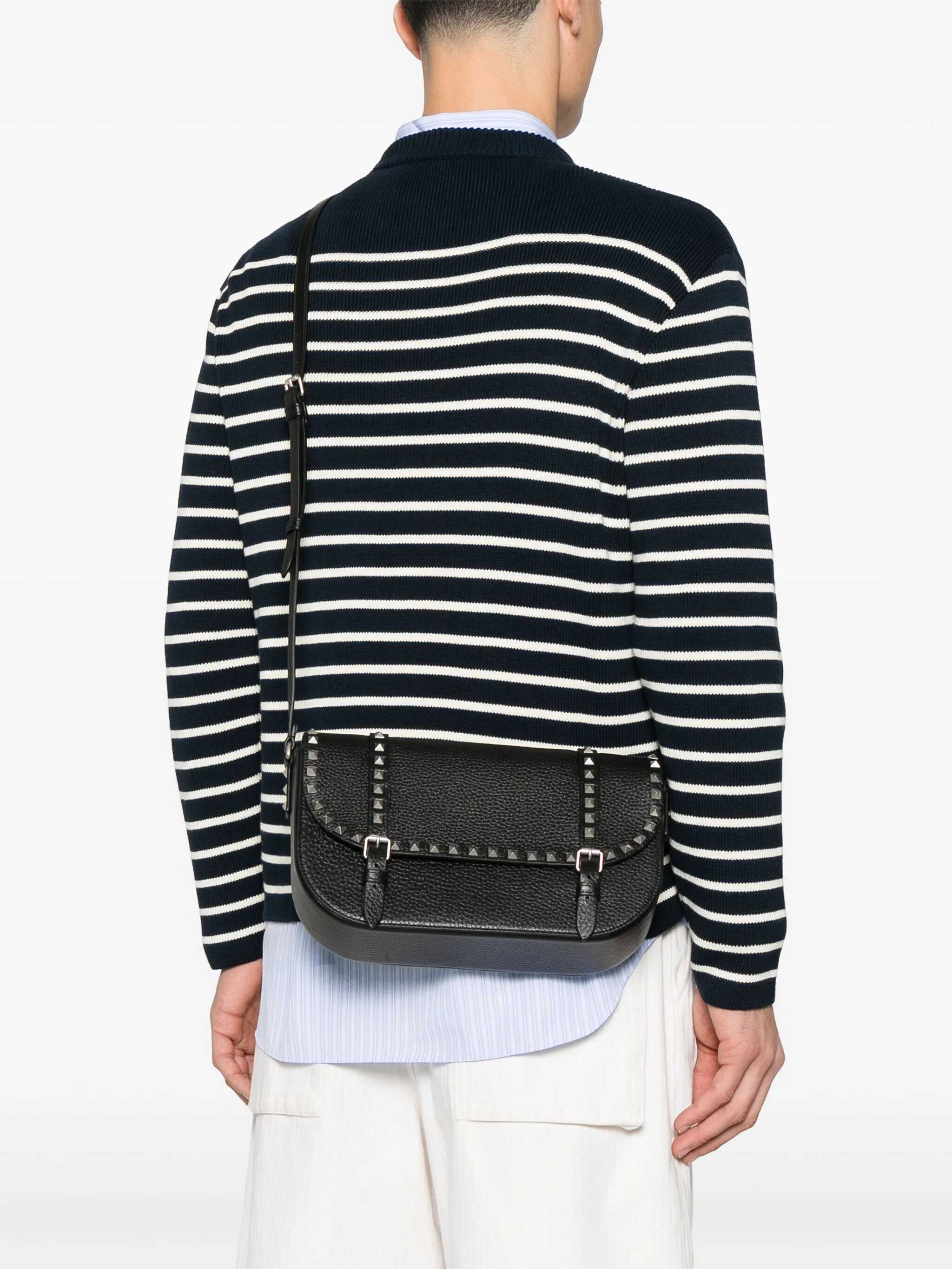 'Rockstud' crossbody bag in grenade leather with antiqued metal studs, magnetic flap closure, adjustable shoulder strap