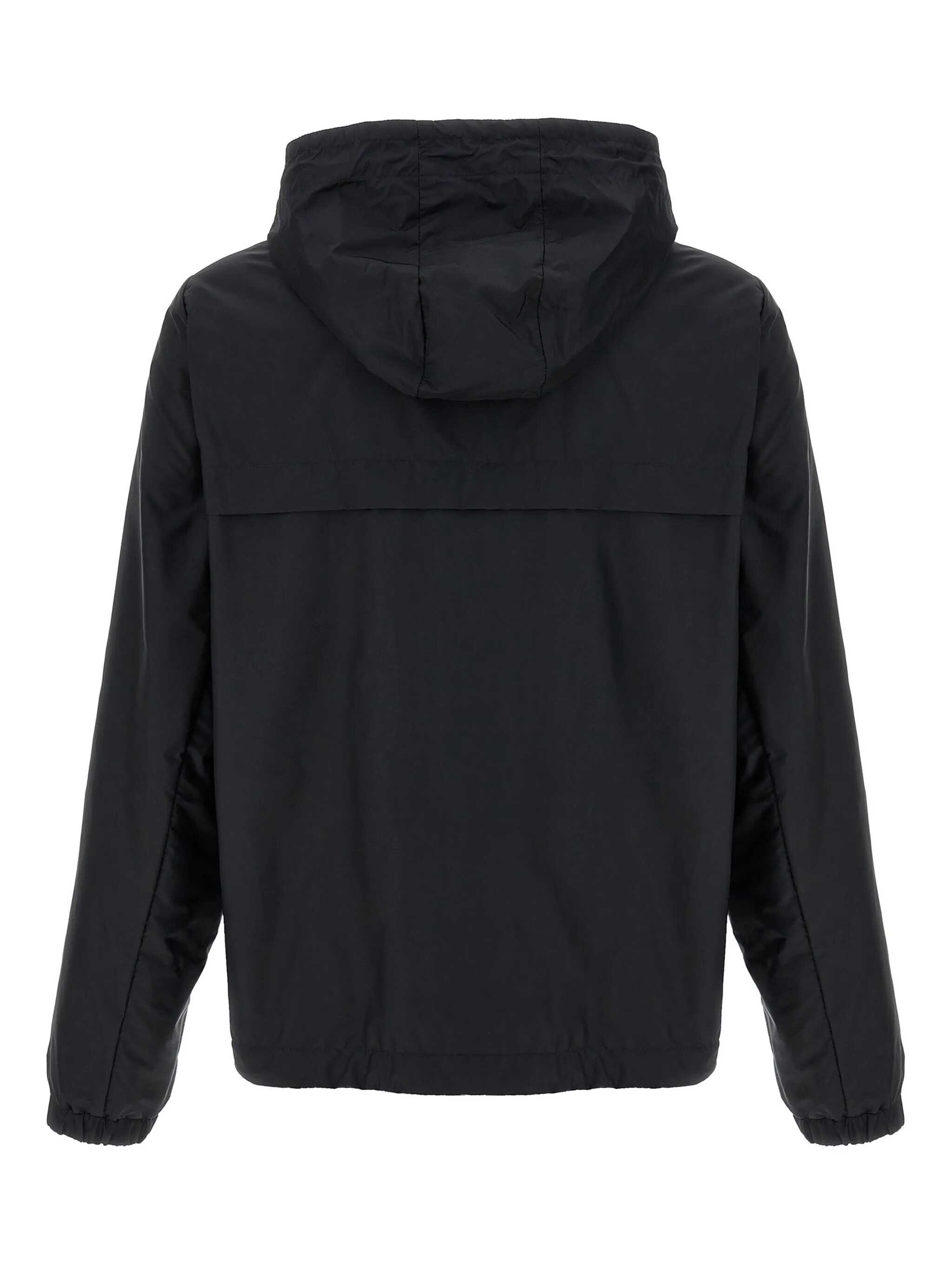 'Rifeo' jacket in technical fabric with hood with adjustable drawstring, contrast felt logo patch on the front, zip closure, pockets, long cuffed sleeves, drawstring on the hem