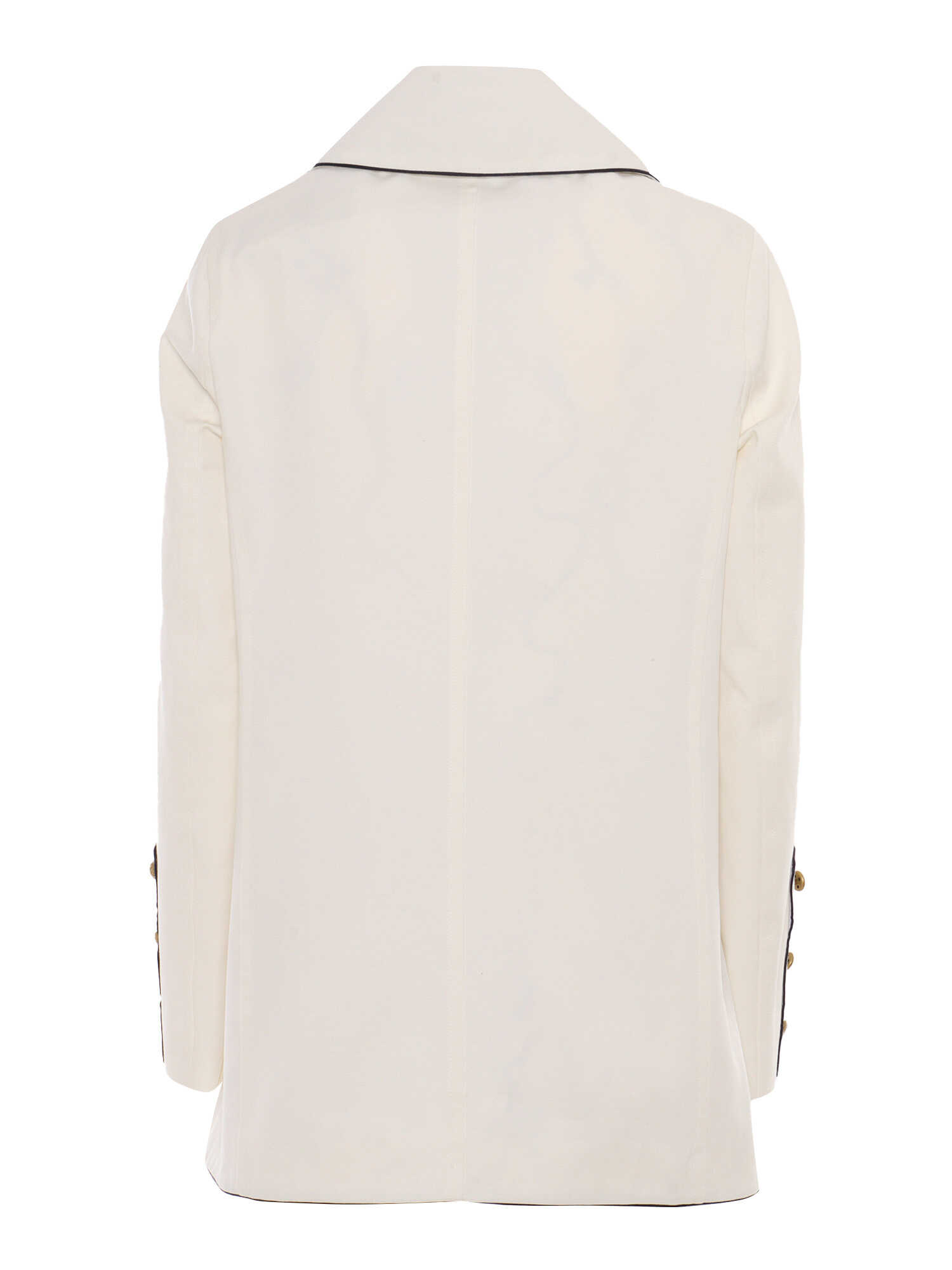 DAHLIA PEACOAT, INNER NAVY BLUE PIPING, BRANDED BRASS BUTTON