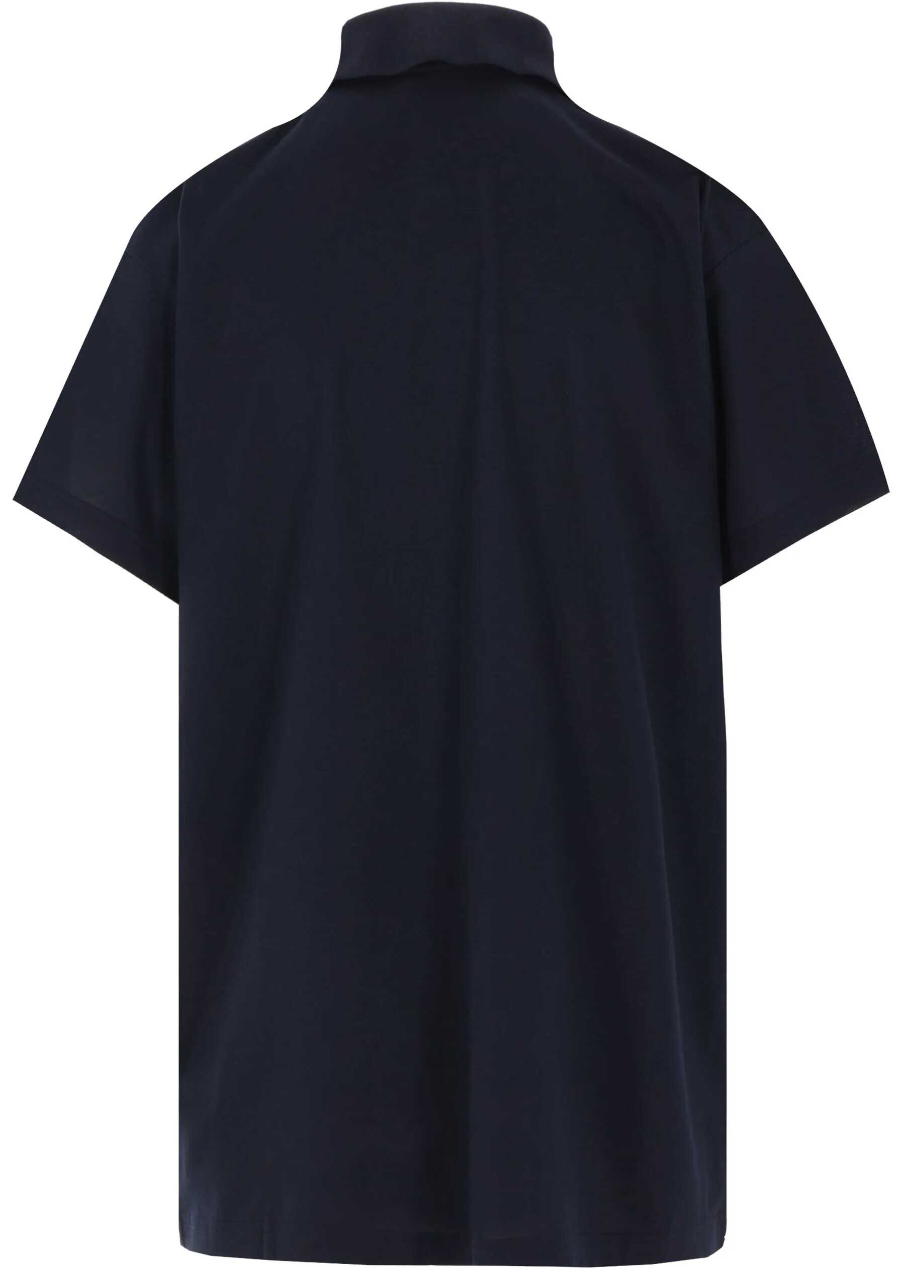 Navy blue cotton pique short-sleeve polo with a tonal BB Garderobe embroidered logo on the chest. It features a classic collar, a placket with two buttons, and a double hem with a trompe l'œil effect. Oversized fit.