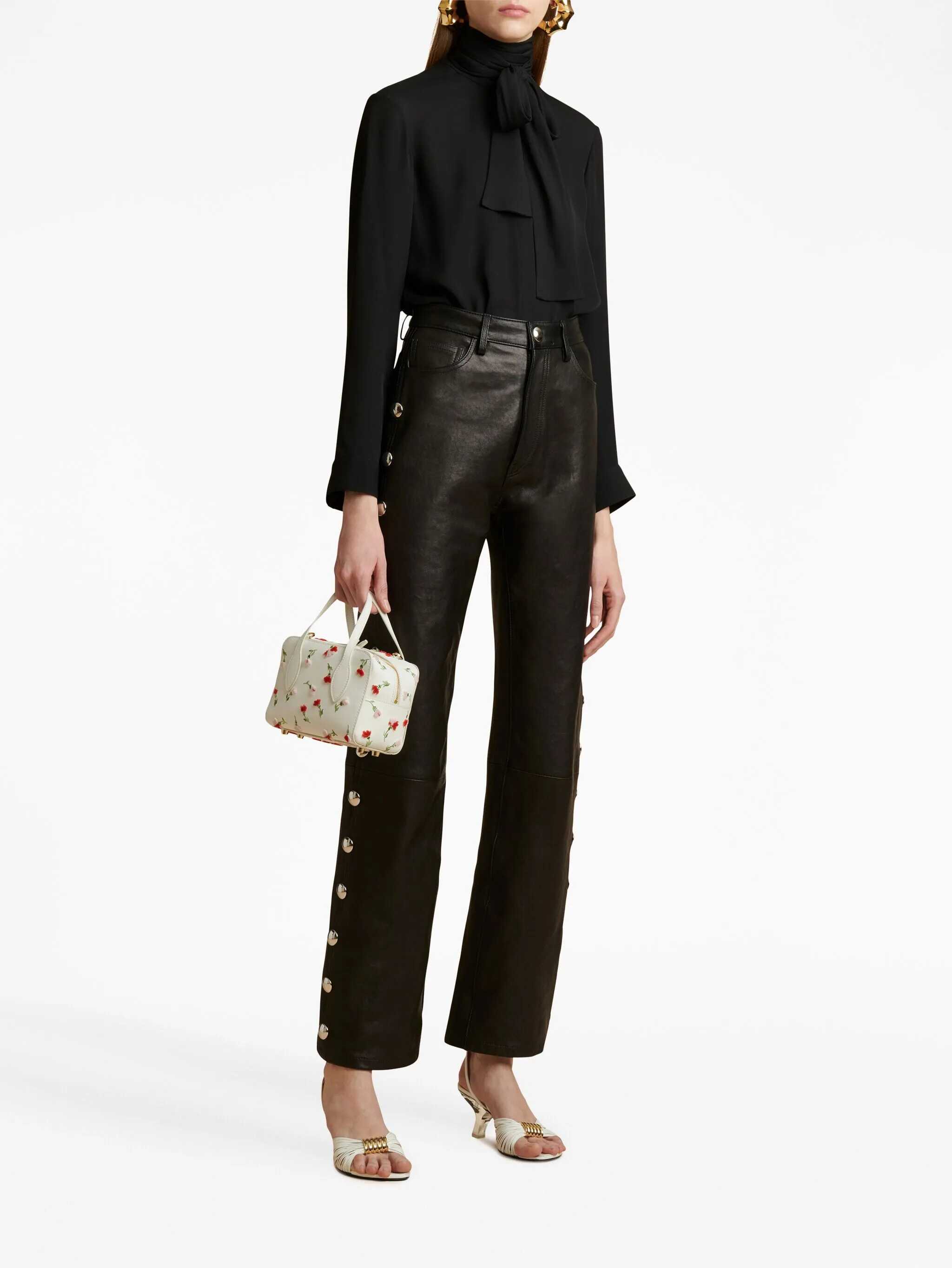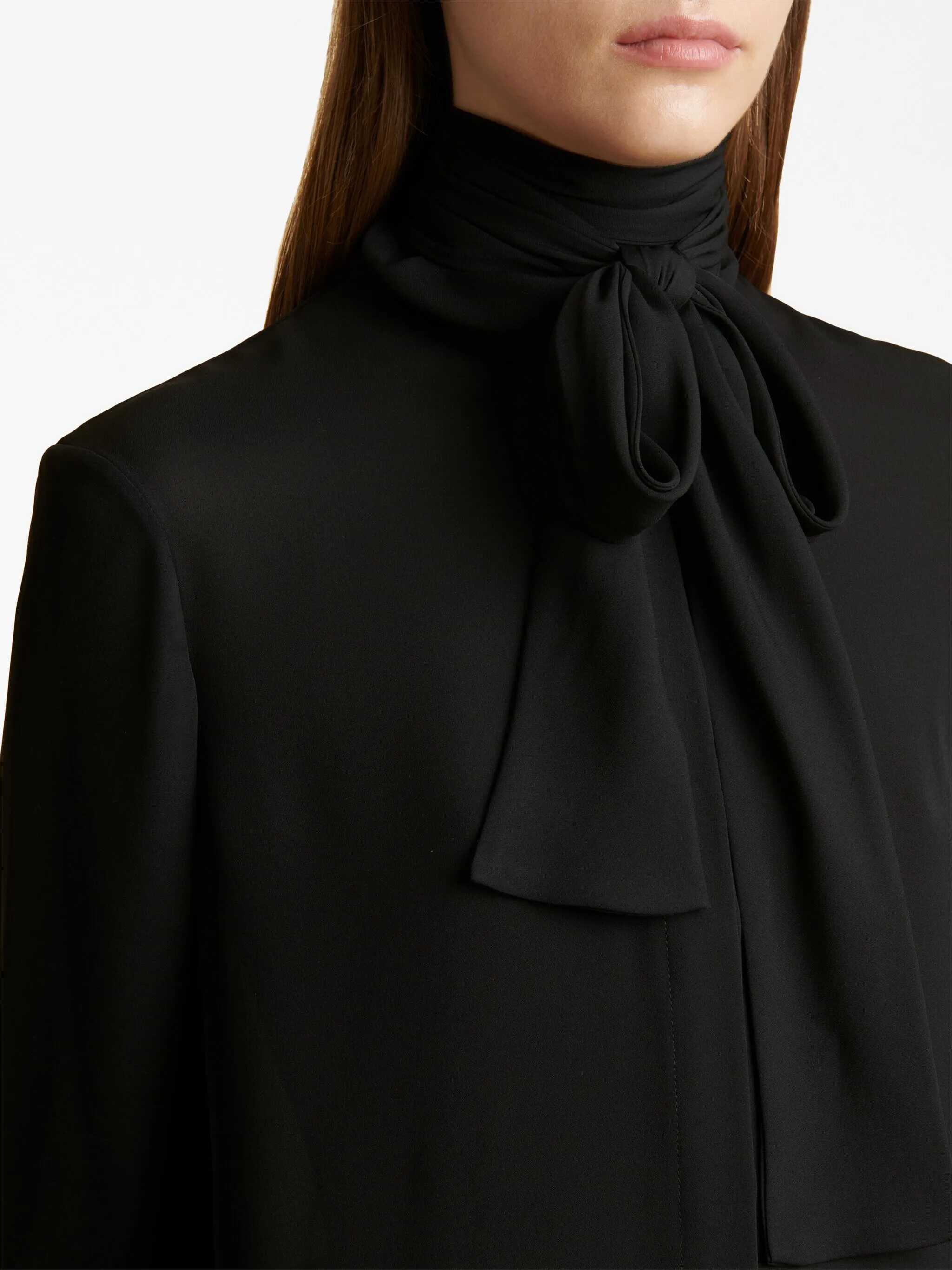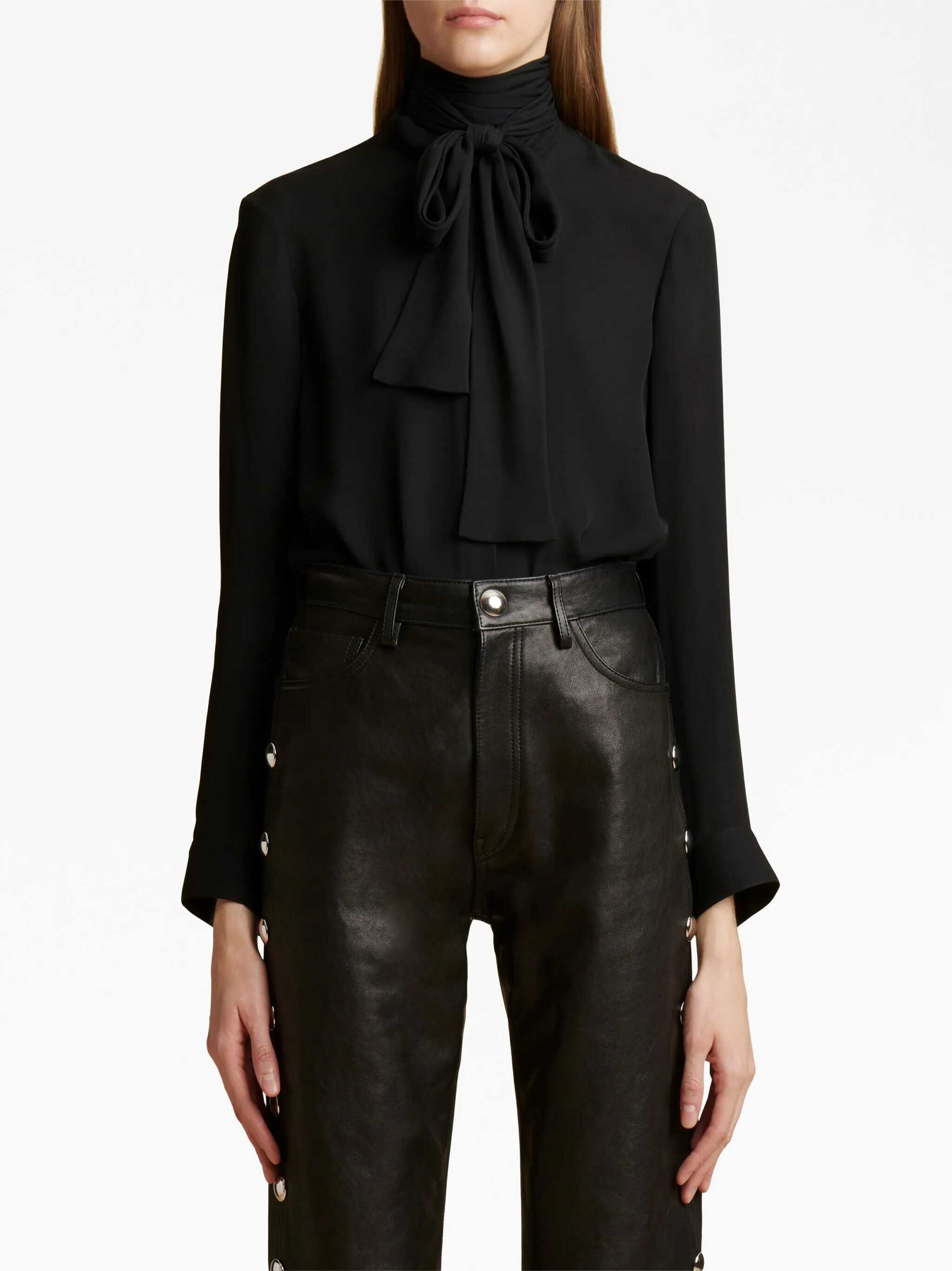The Khaite Tash Silk Shirt is a luxurious piece that combines elegance and sophistication. The concealed button front closure gives it a clean and sophisticated look, while the adjustable button cuffs allow you to customize the fit to suit your style. The semi-sheer design adds a sensual and delicate touch, without compromising the class of the piece. The self-tie sash collar offers a customization option that allows you to play with the style, creating an elegant and versatile effect.