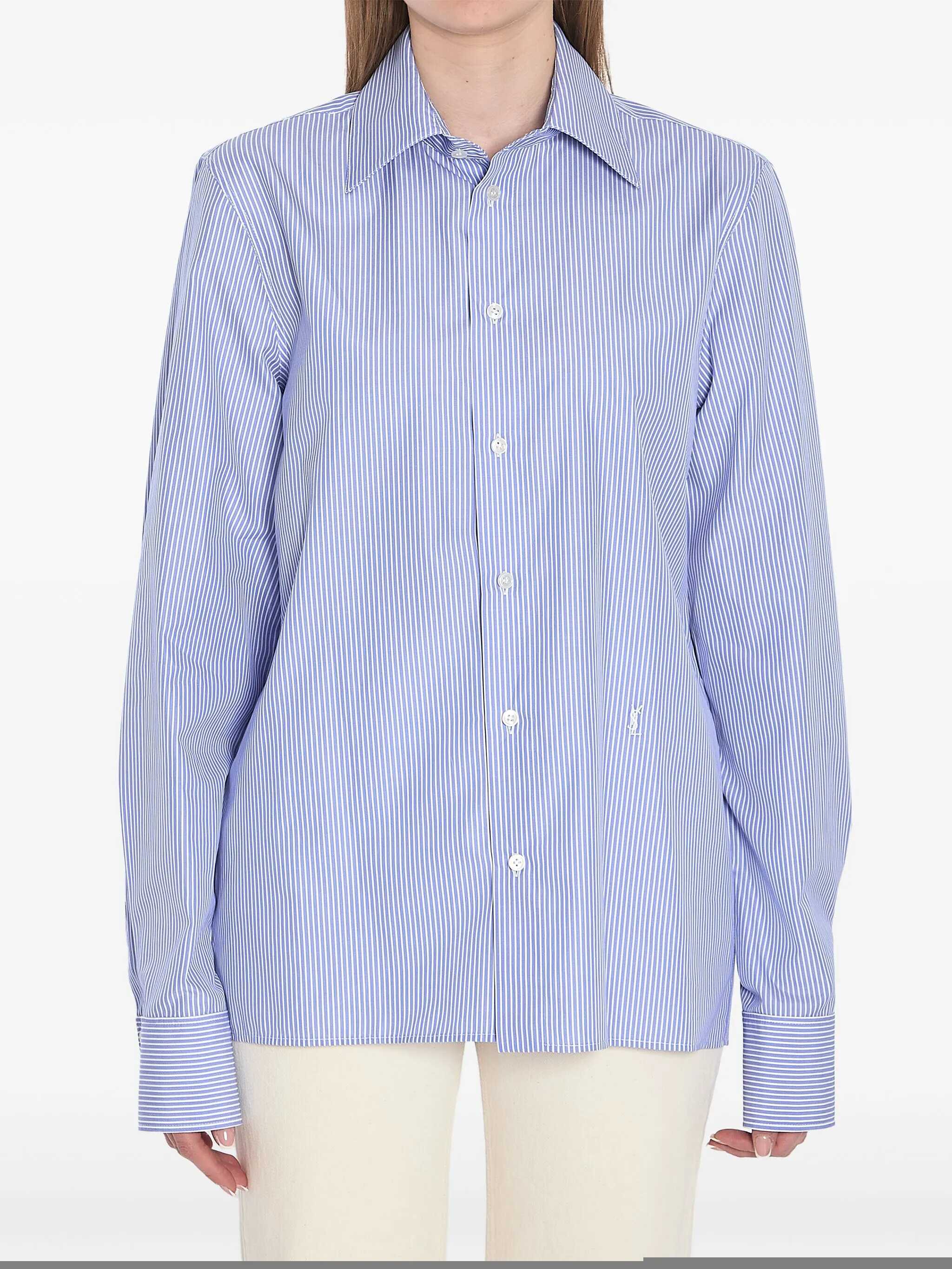 Saint Laurent Blue And White Striped Shirt With Frontal Buttons Closure, Regular Collar, Long Sleeves, Button On Cuffs, Embroidered Logo On The Front, EU SIZE