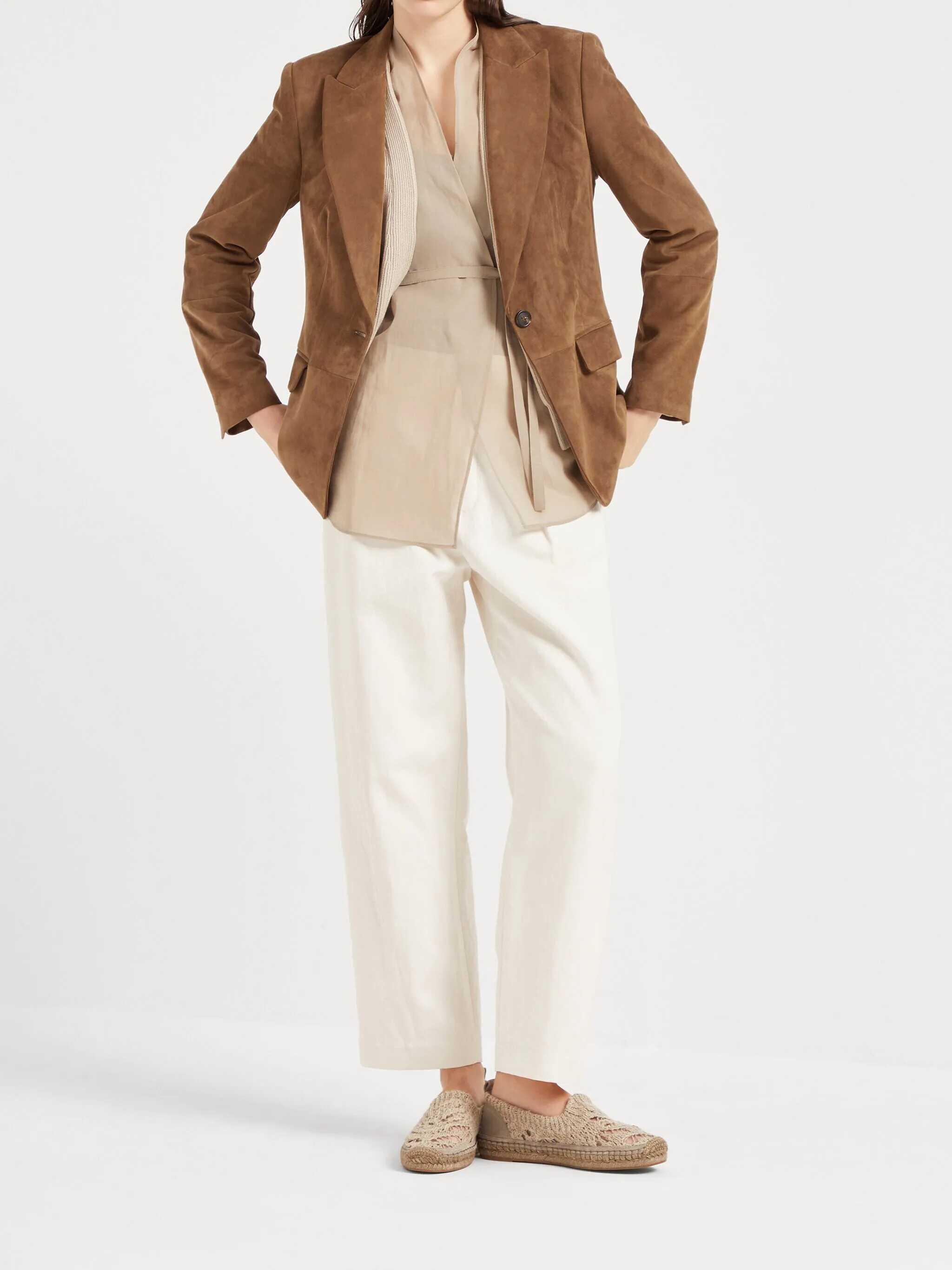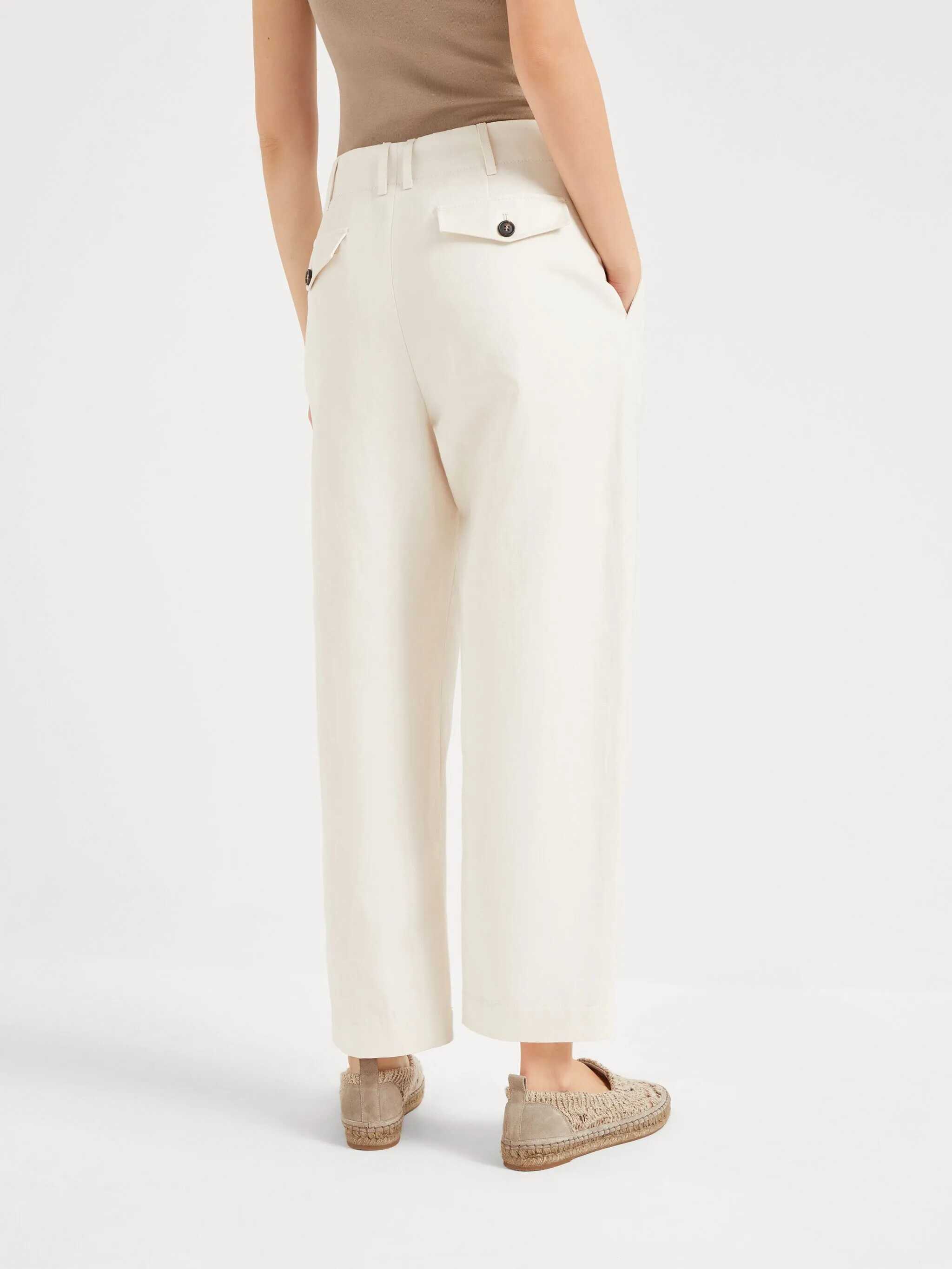 Cotton Pants by Brunello Cucinelli, baggy ankle-length design, front zipper and button closure, belt loops waistband, two slash pockets, two welt back pockets with flap and buttons, monochrome pattern, regular fit.