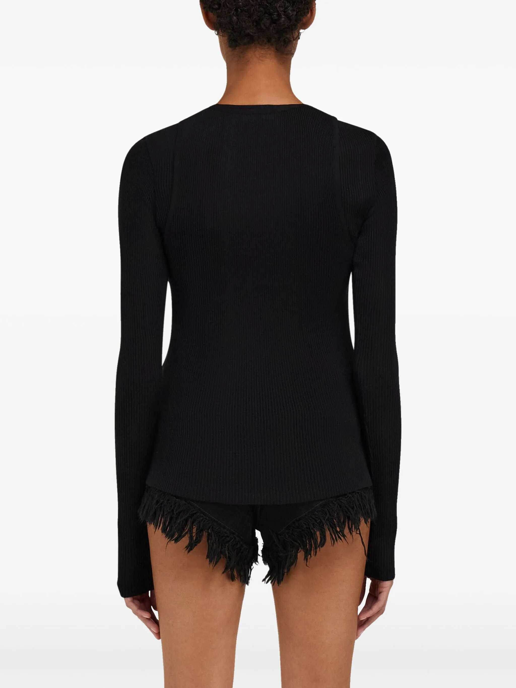 The Ferragamo Long Sleeve Top is a sophisticated and refined piece that combines elegance and comfort. The ribbed design provides a refined texture, while the shaped neckline adds a feminine and modern touch. The iconic embroidered logo on the front, positioned discreetly, highlights the quality and luxury of the brand without being invasive. Crafted from a soft and high-quality fabric, this sweater is ideal for elegant yet casual looks, perfect for any occasion that requires style and sophistication.