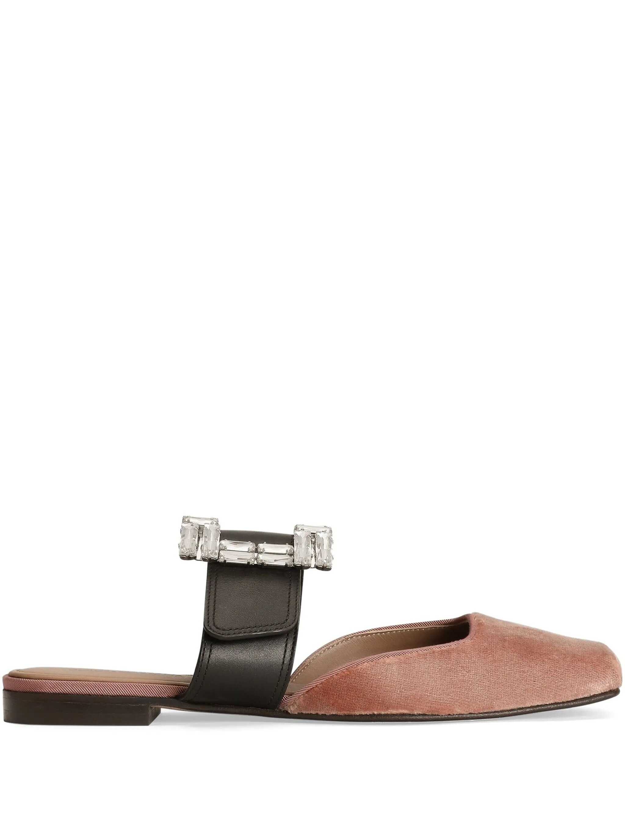 Velvet sabot with jewel buckle Pink and black color Lambskin insole with embossed logo Logoed leather sole Square toe model