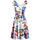 'Bouquet' print cotton dress with smock stitch at the waist, V-neck front and back, bow straps, full skirt, back hook and zip closure.