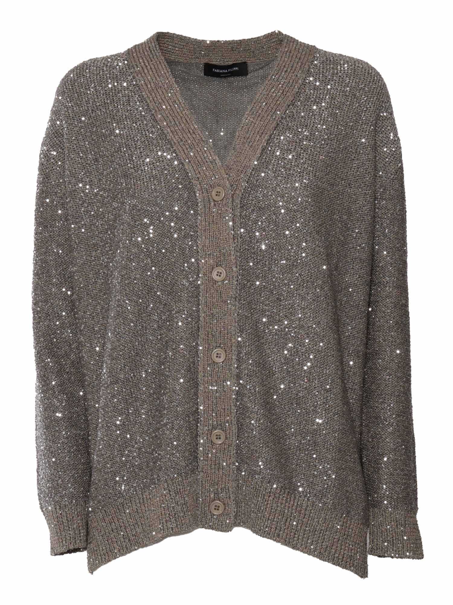 SEQUIN COTTON RIBBON V NECK CARDIGAN
