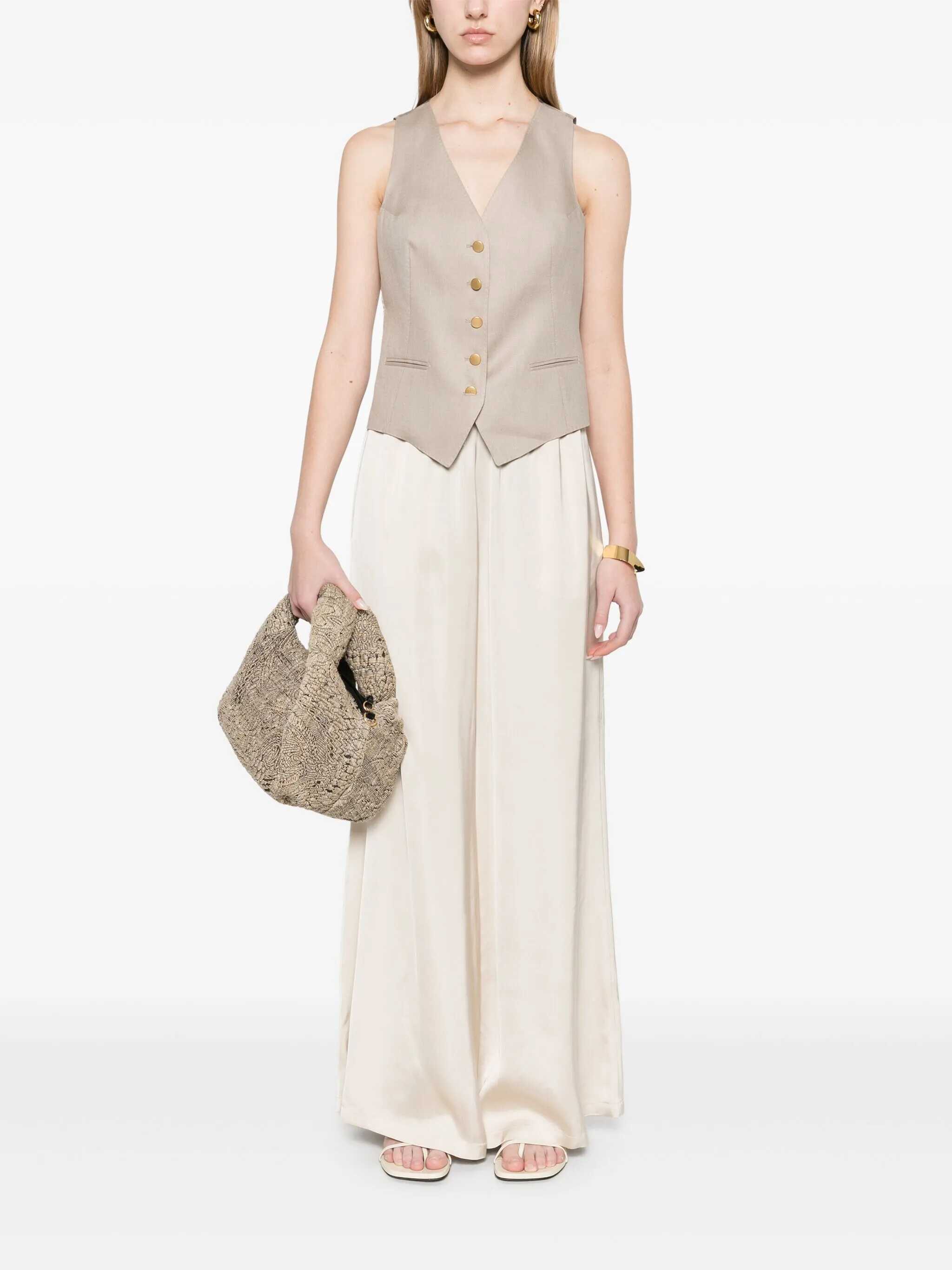 VISCOSE SATIN WIDE LEG TROUSERS WITH ELASTIC WAISTBAND