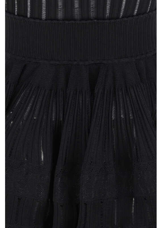 Dress by Alaïa, mini sleeveless design, U-neck front, wide pleated skirt, knitted design, stretch fabric, monochrome pattern, regular fit.