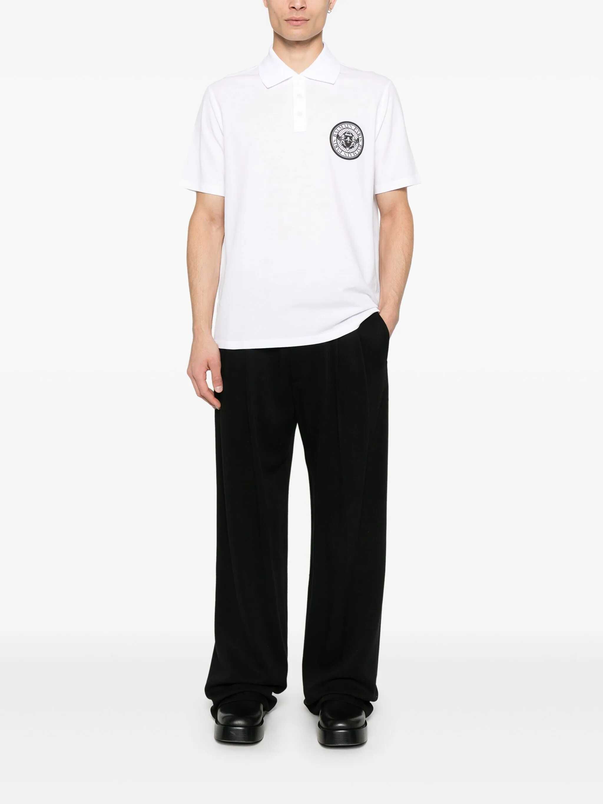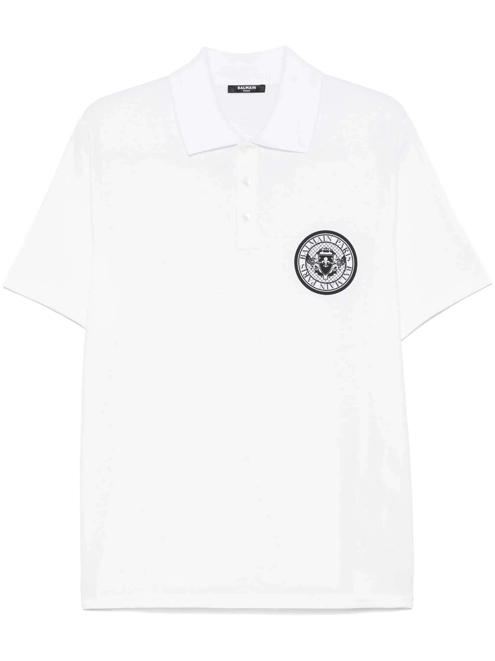 Piqué cotton polo shirt with front 'Coin' print, collar and buttons, short sleeves