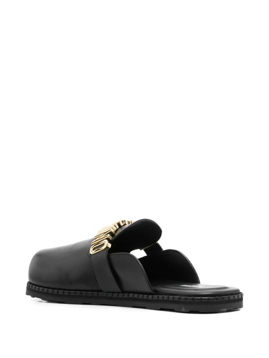 'Birky' leather sabots with front metal logo appliqué and rubber sole