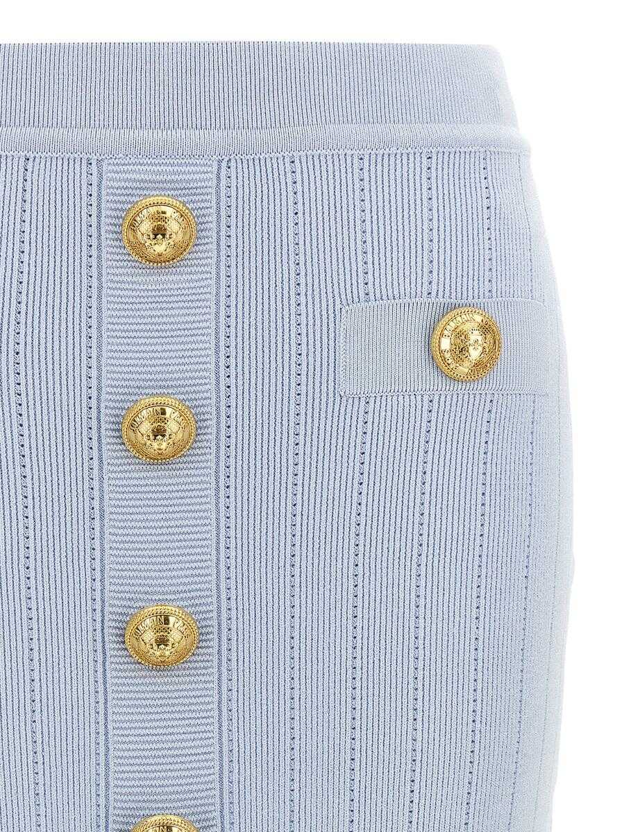 Stretch viscose blend skirt with 'Chiocciola' logo buttons, trompe-l'œil pockets and back zip closure