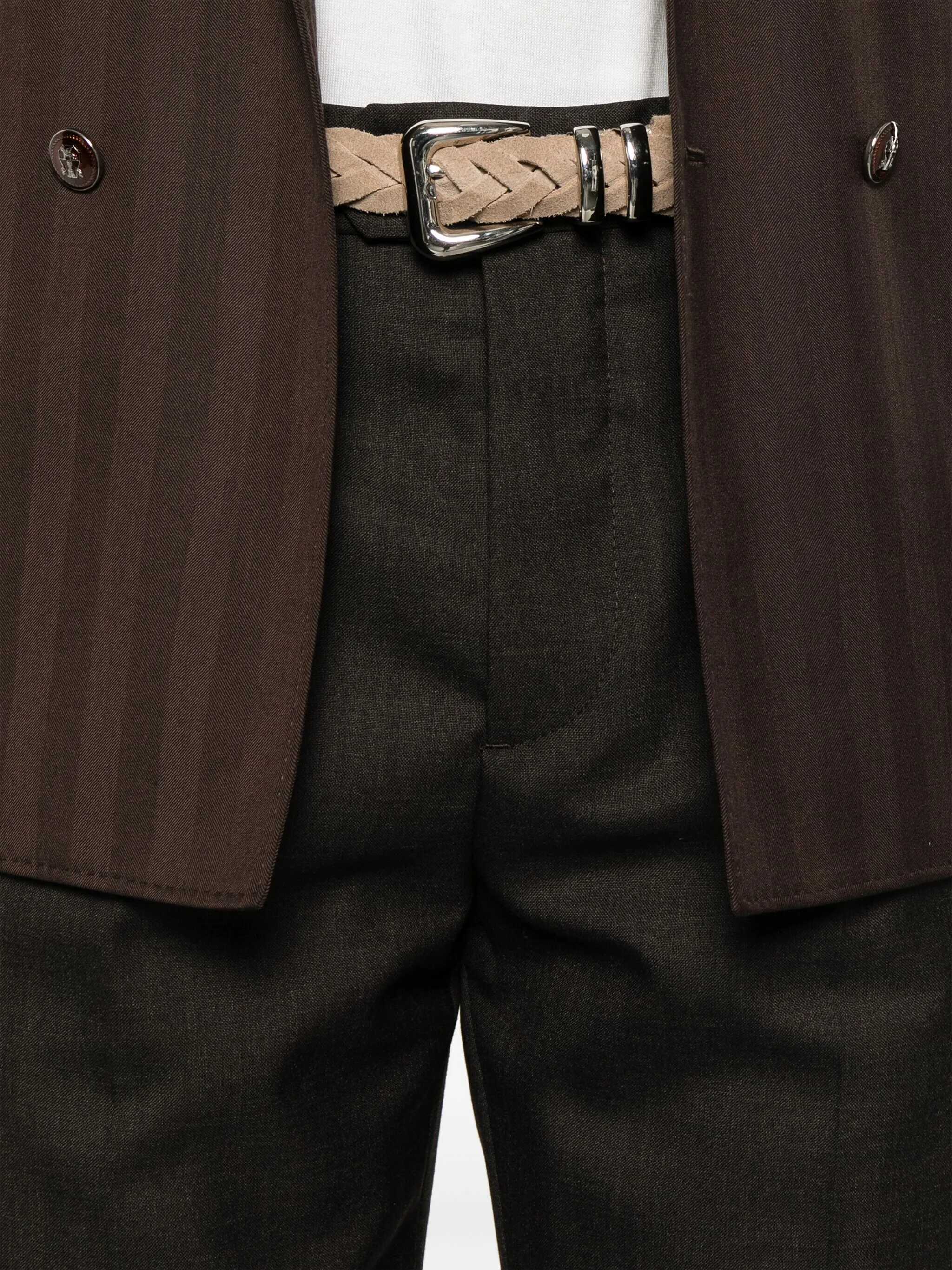 Brunello Cucinelli's virgin wool Pants feature a button-and-zip front closure for a secure and sophisticated fit. The two side slash pockets and back welt pockets offer practicality without sacrificing style. The waistband has belt loops, allowing you to customize the fit.