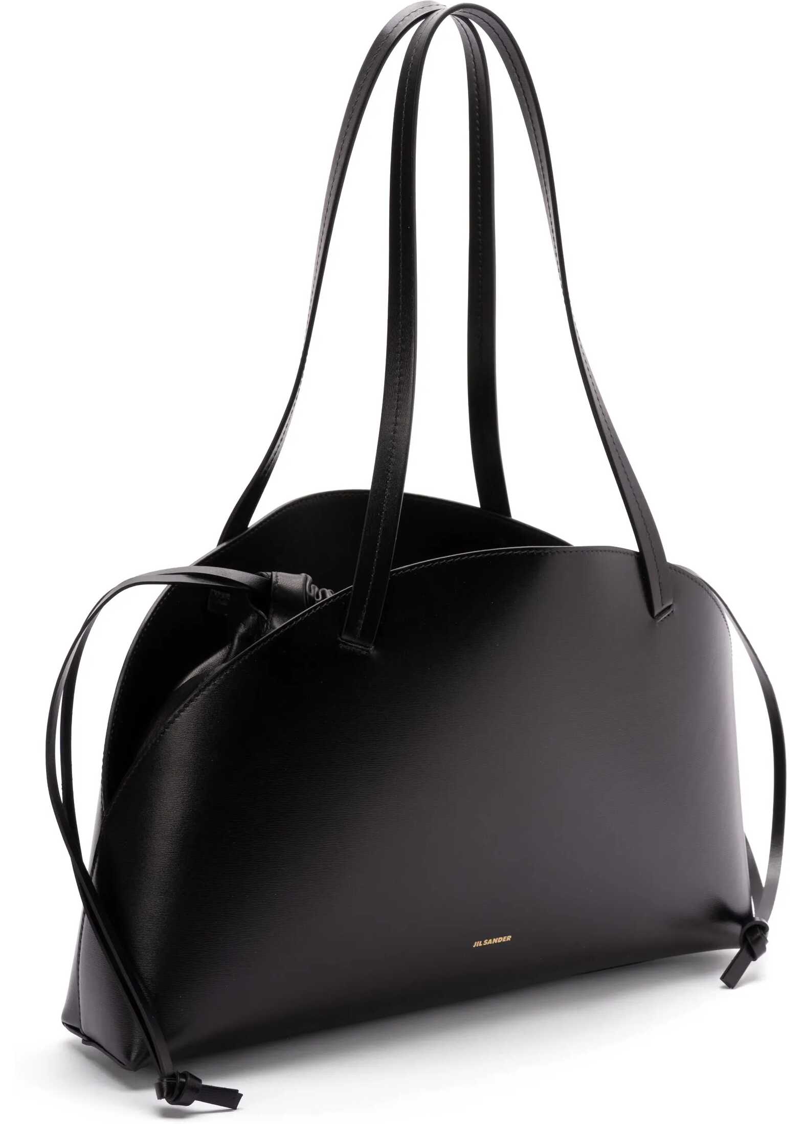Jil Sander's Curve leather Shoulder Bag is a sleek and sophisticated accessory perfect for those seeking a minimalist yet refined style. The two top handles provide comfortable carry, while the top drawstring closure offers secure closure and a clean design. The iconic monogram on the front adds a distinctive brand touch without sacrificing its understated elegance. The interior, with a single compartment, is practical and functional, perfect for storing essentials. A versatile garment that adapts to different styles and occasions.