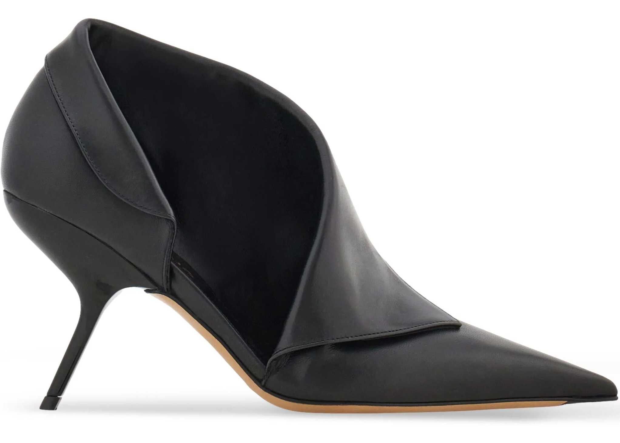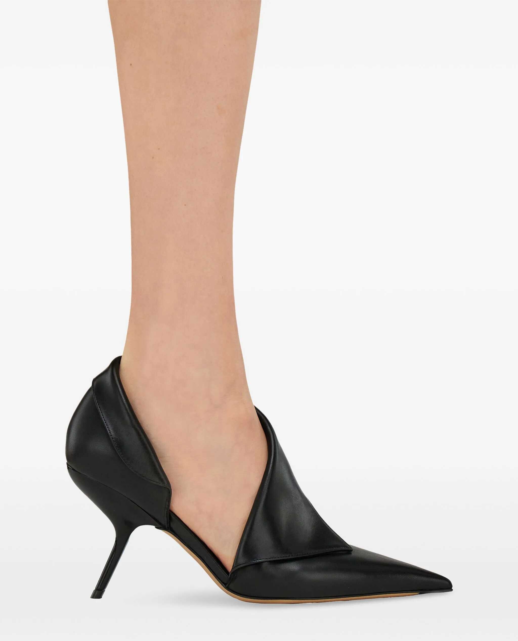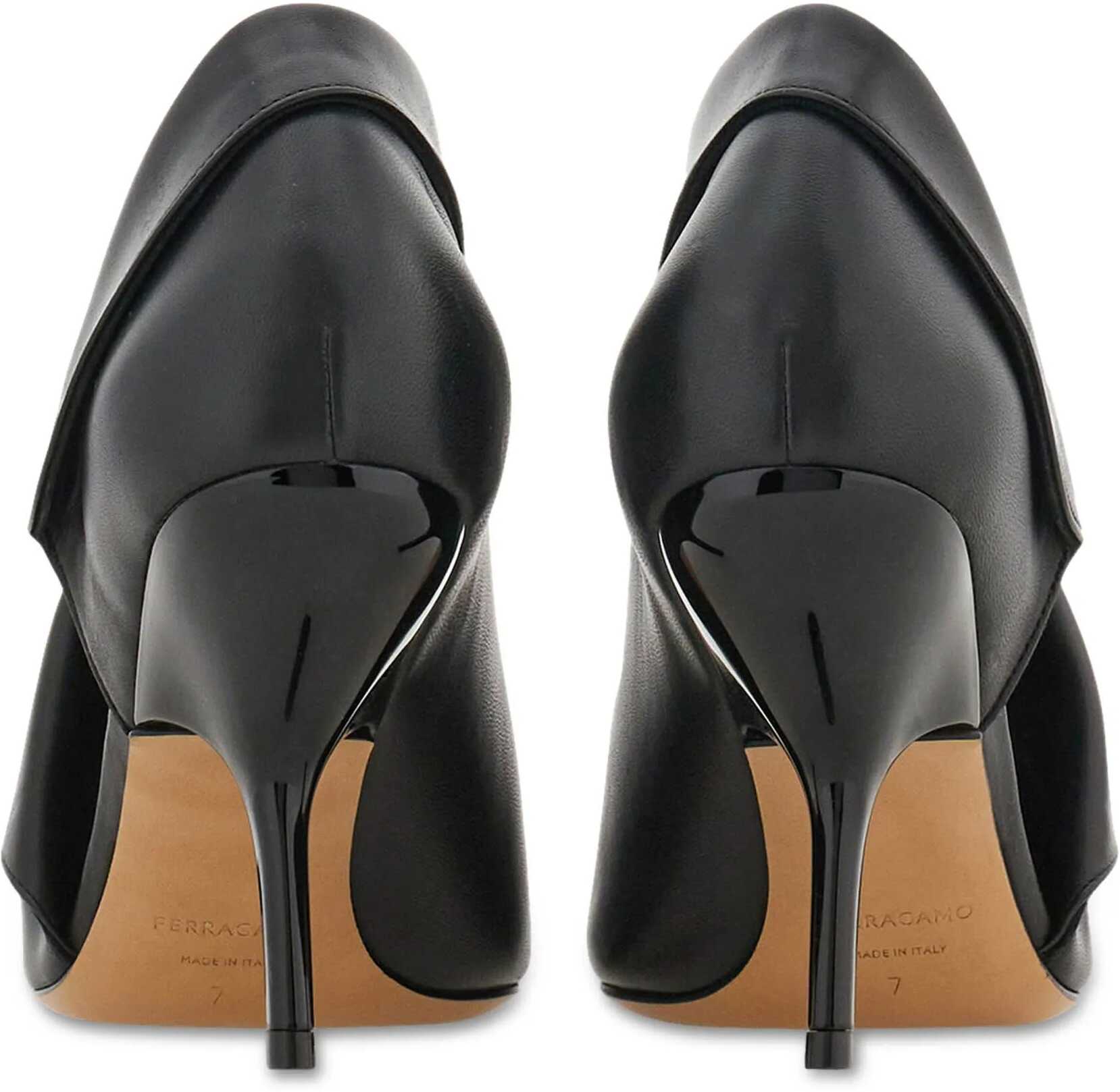 Ferragamo's leather Pumps are an elegant and bold interpretation of the classic high heel. They feature an elongated toe that lends a refined look, while the crooked leather stiletto heel adds a touch of originality. A cut-out detail on the outer side panel and an elegant turn-up at the edge lend distinctive character to the model. The branded insole completes the design with an additional luxury accent.