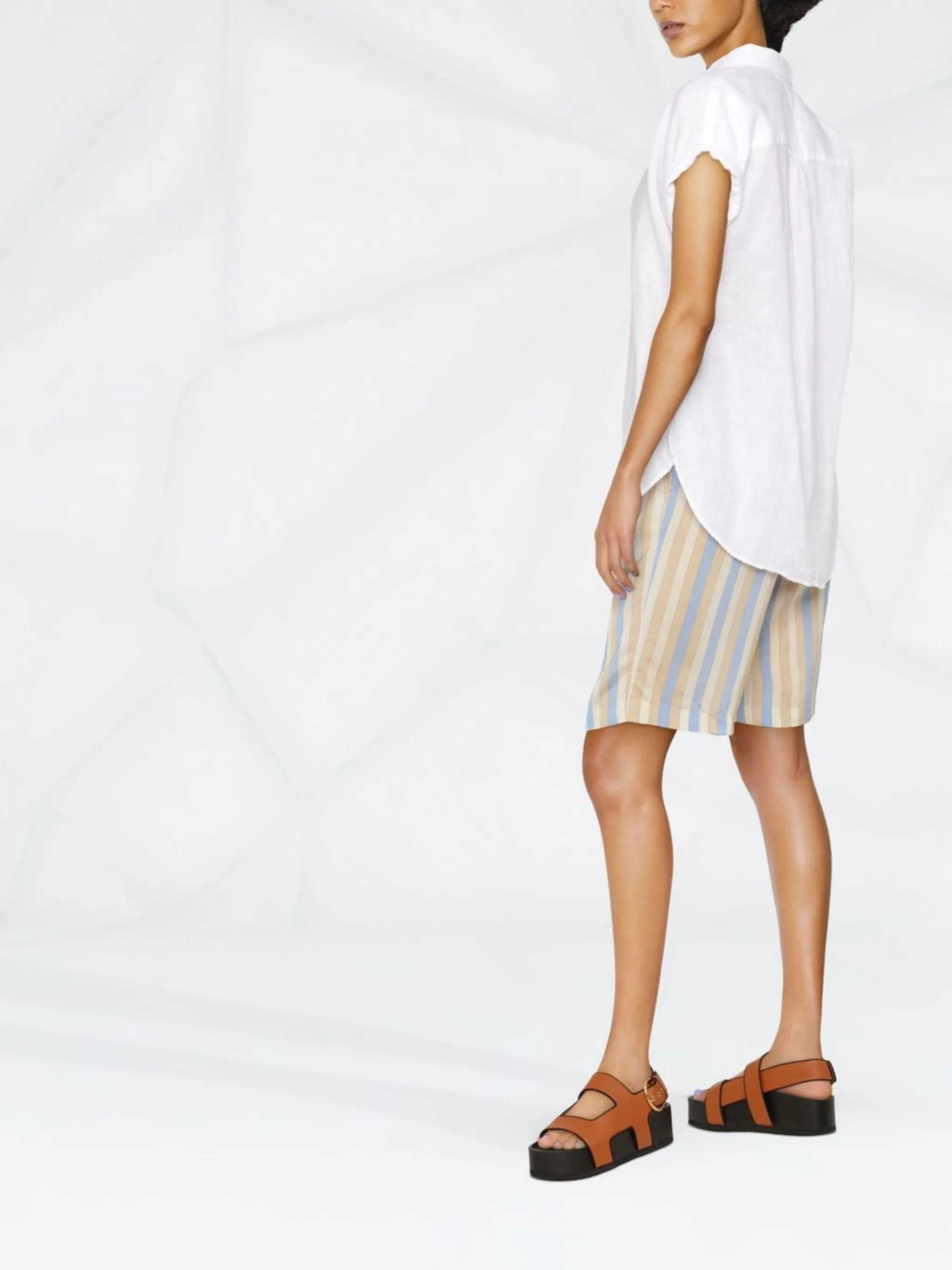 "White linen shirt with French collar, raglan sleeve with turn, button closure by LAUREN RALPH LAUREN."