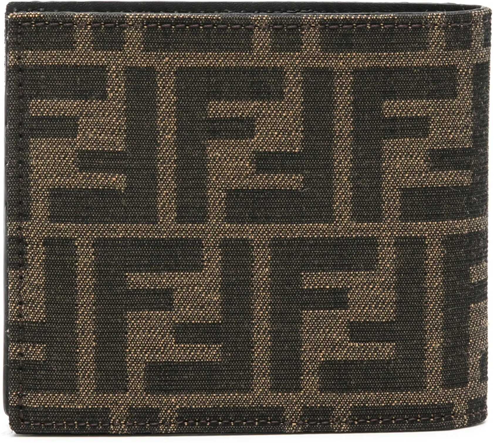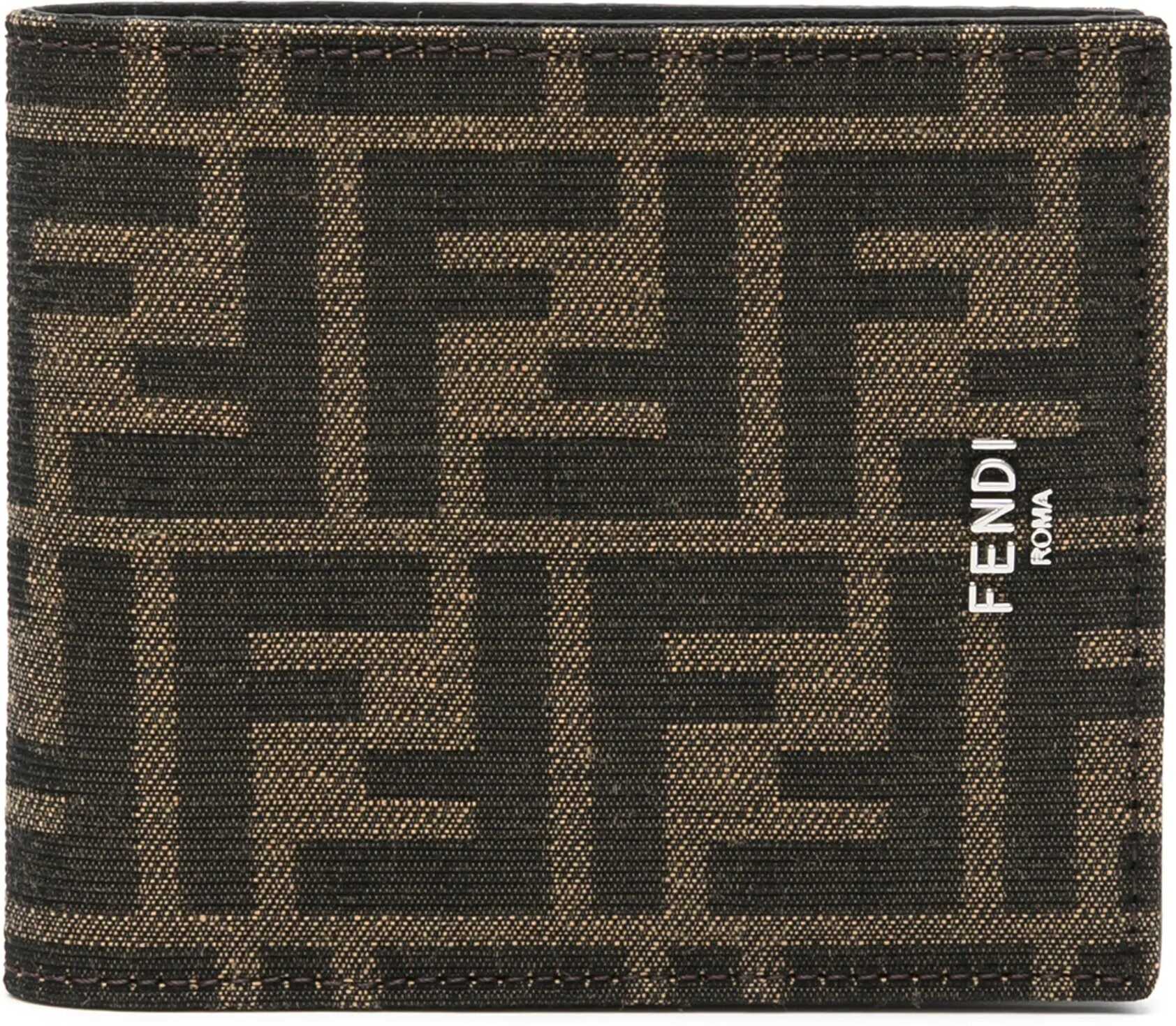 Bi-fold wallet in brown and tobacco FF fabric with black leather interior. It features two bill compartments, eight card slots and two additional slip compartments. Fendi Roma lettering in metal. Dust bag included. Any leather imperfections are not to be considered manufacturing defects, but a peculiarity of the material.