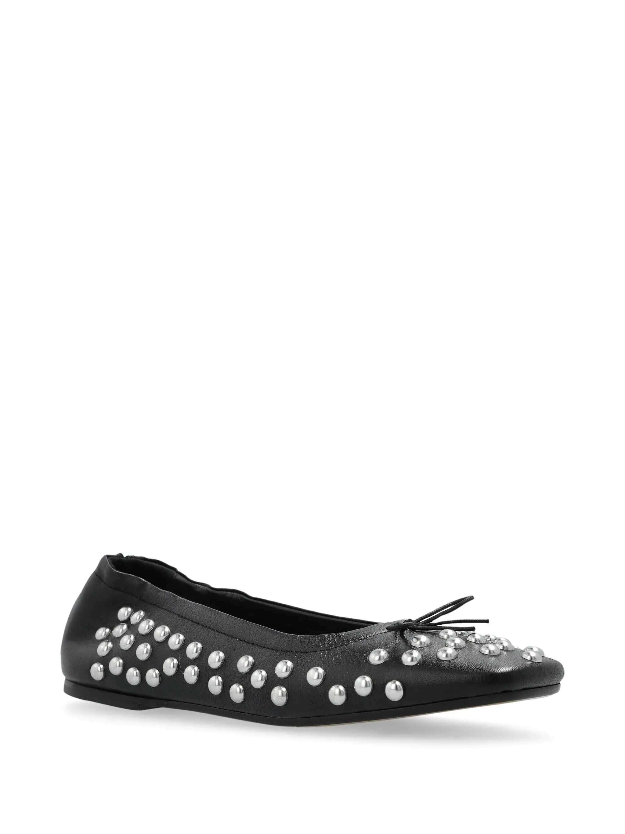 'Amy' nappa ballet flats with vintage treatment and all-over metal studs, front bow detail, square toe, back zip closure, leather sole