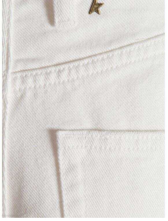off-white cotton blend coated finish high waist front button and zip fastening belt loops classic five pockets straight leg
