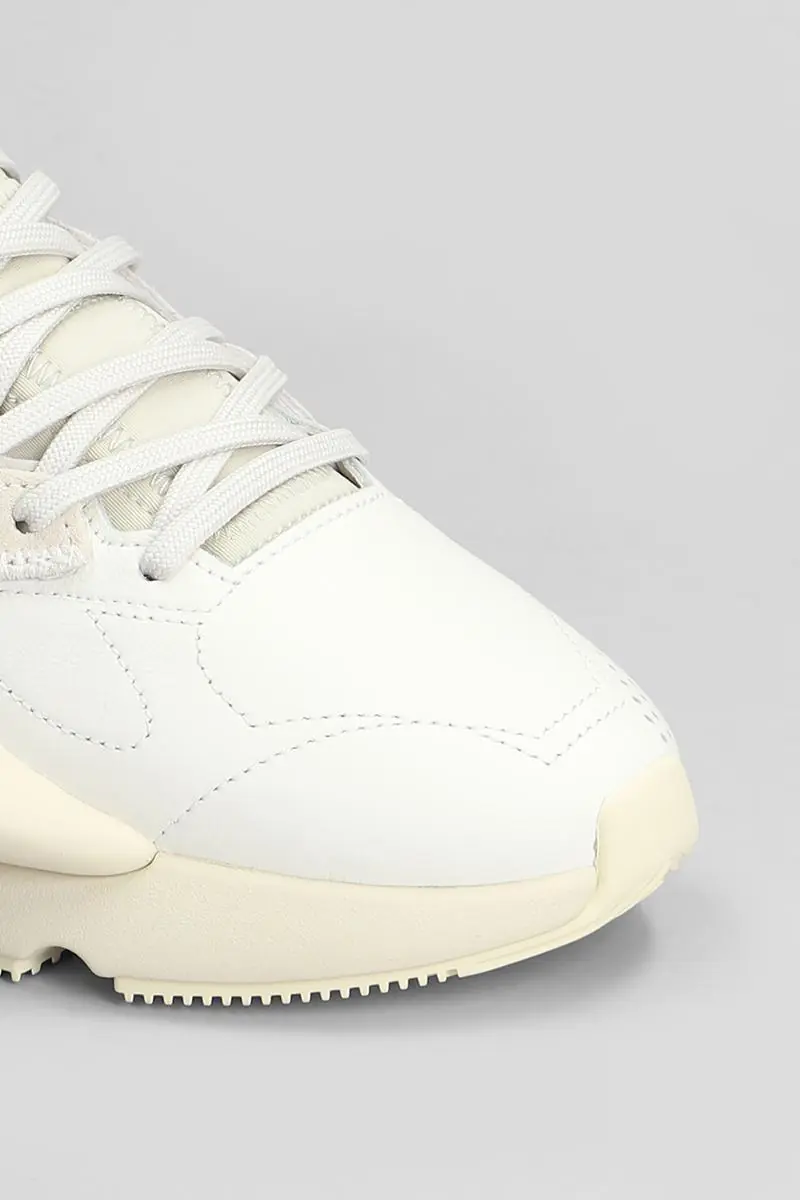 Kaiwa Sneakers in white leather, laces, logo on upper tongue, logo on heel, perforated upper toe, tiered design, rubber sole, 100% leather, attached fabric, neoprene fabric, Made in China