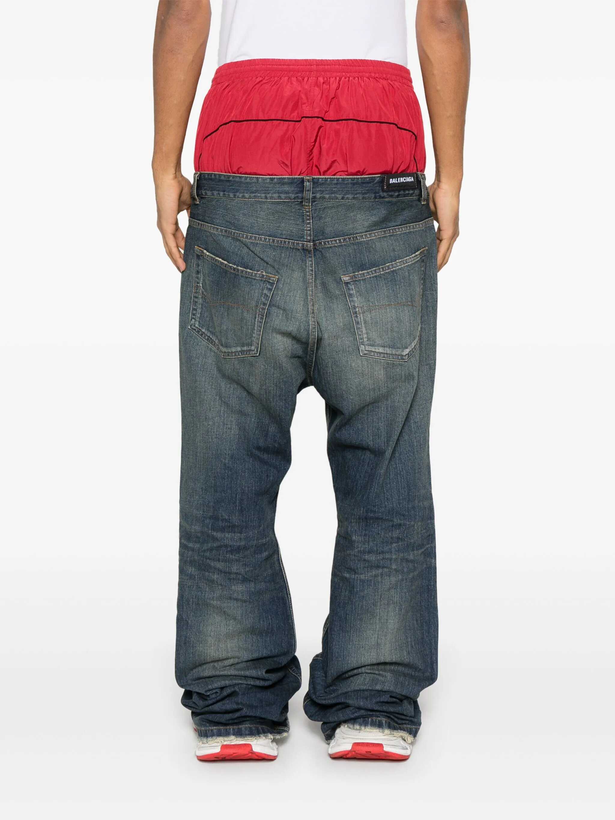 Balenciaga Denim Layered Jeans, Zip And Button Closure, Pockets, Logo On Back, Boxer Detail, US SIZE