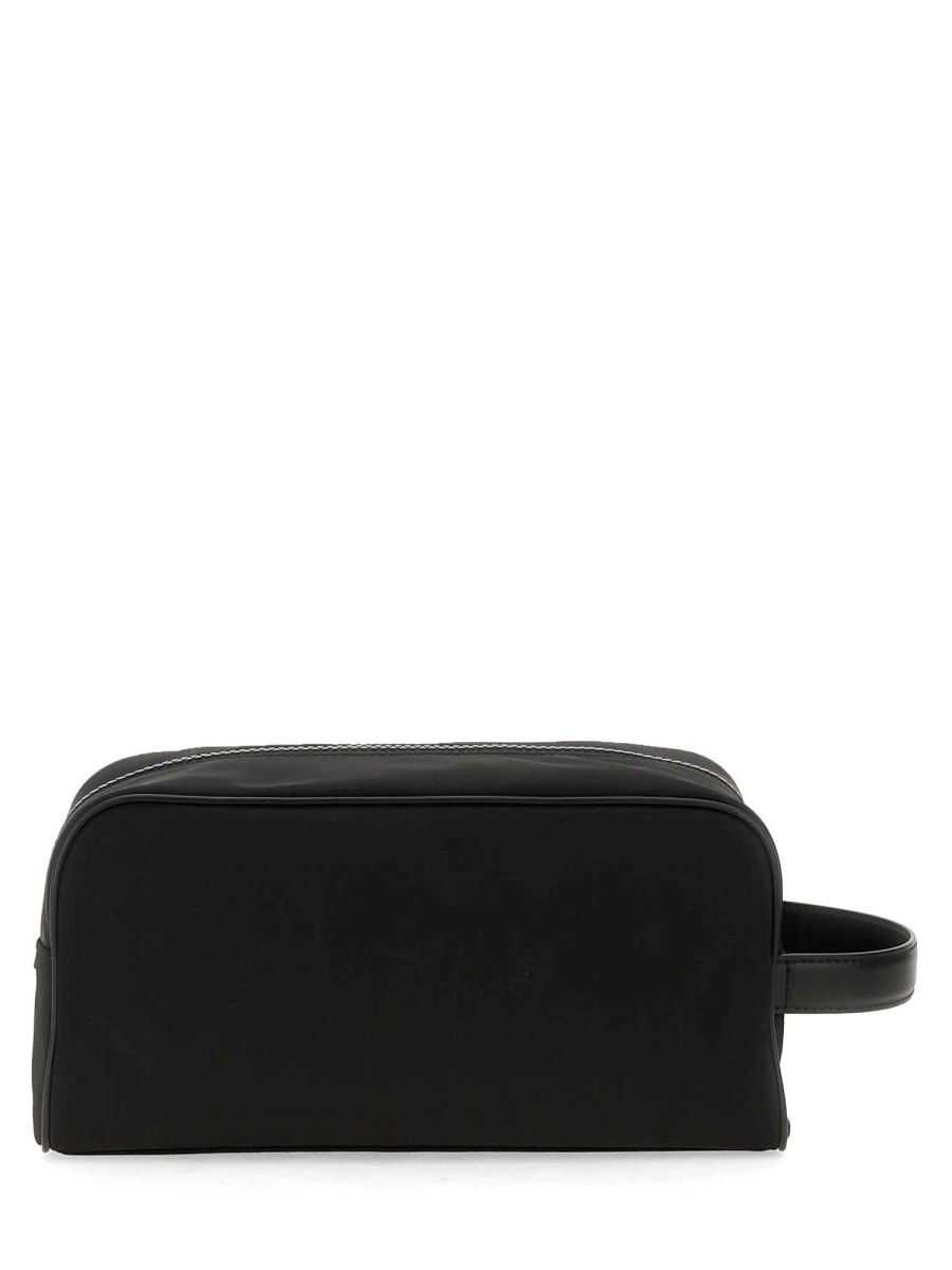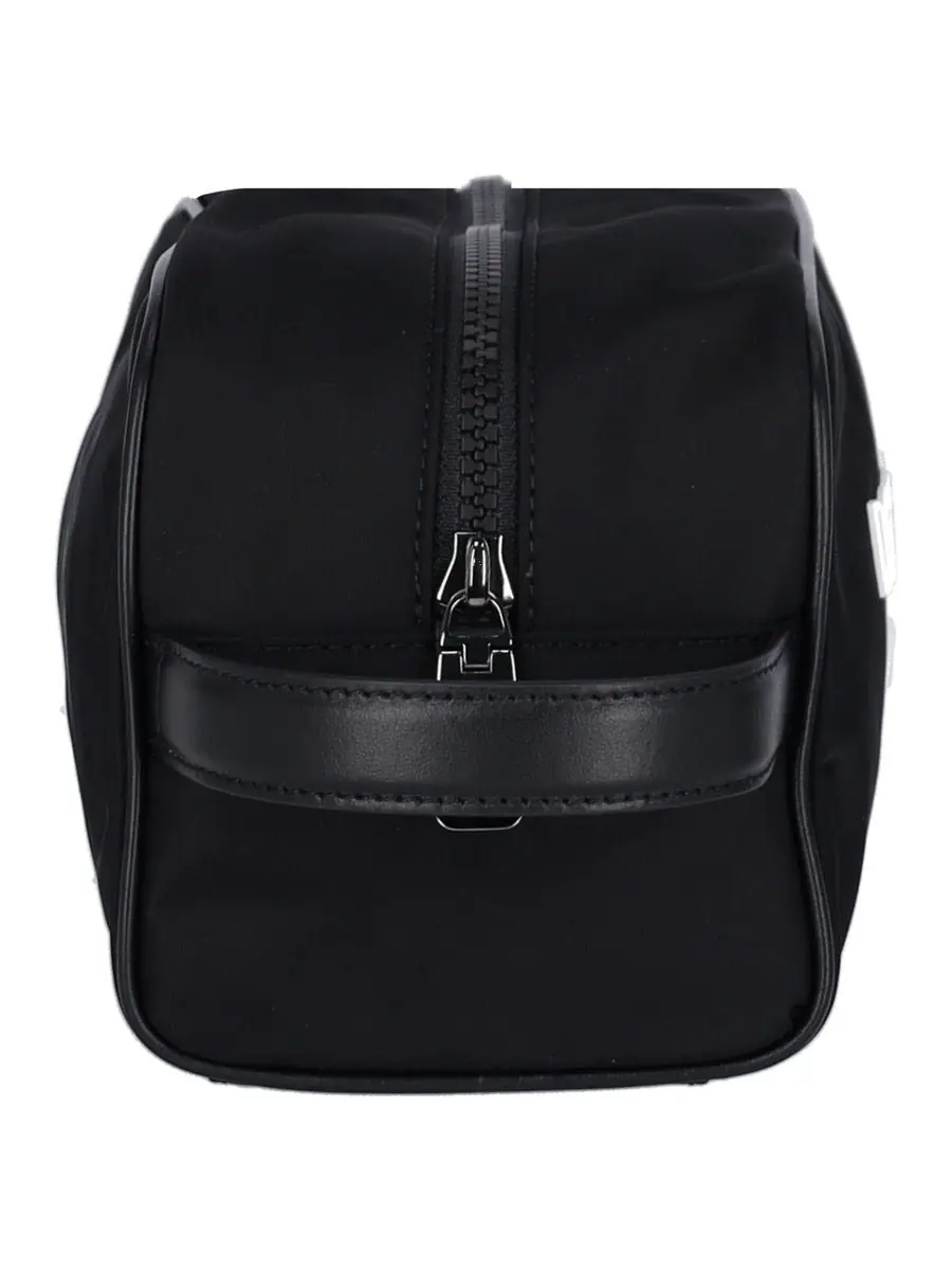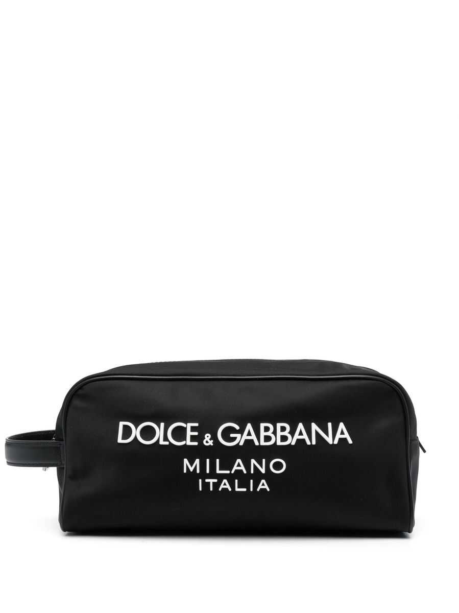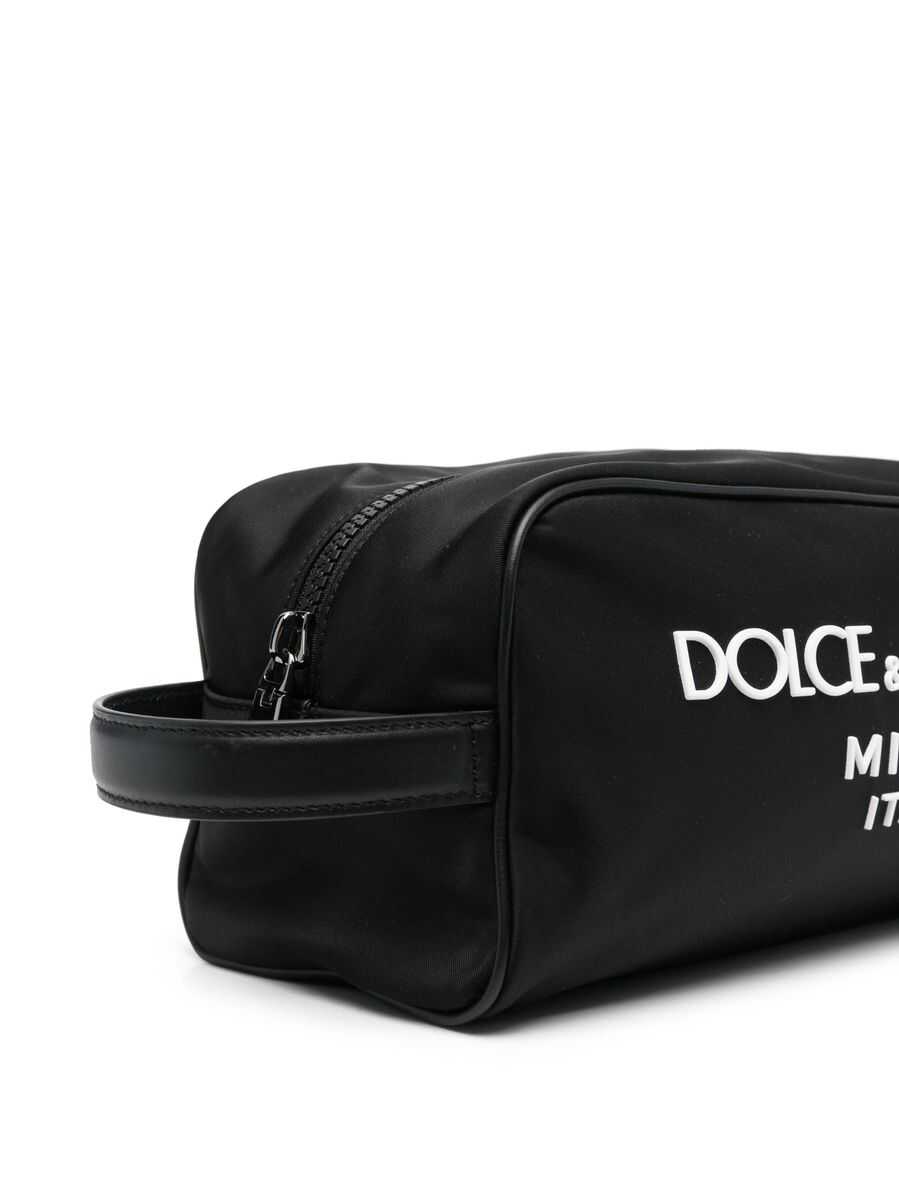 Nero logo-print wash bag from DOLCE & GABBANA featuring black, calf leather, logo print to the front, single flat side handle, top zip fastening, main compartment, internal logo patch and internal zip-fastening pocket.