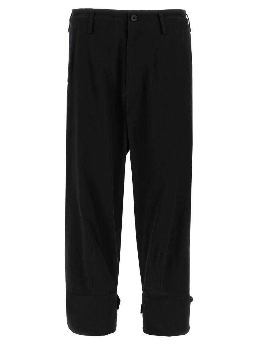 Cotton pants with print on the front and back, zip and button closure on the front, pockets, leg bottoms with adjustable straps