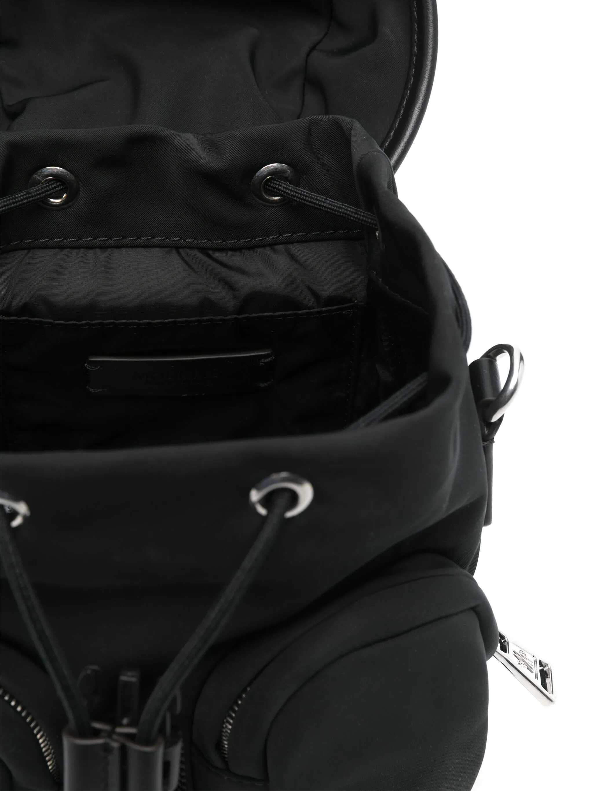Black backpack from Moncler featuring logo buckle fastening single flat top handle adjustable shoulder strap