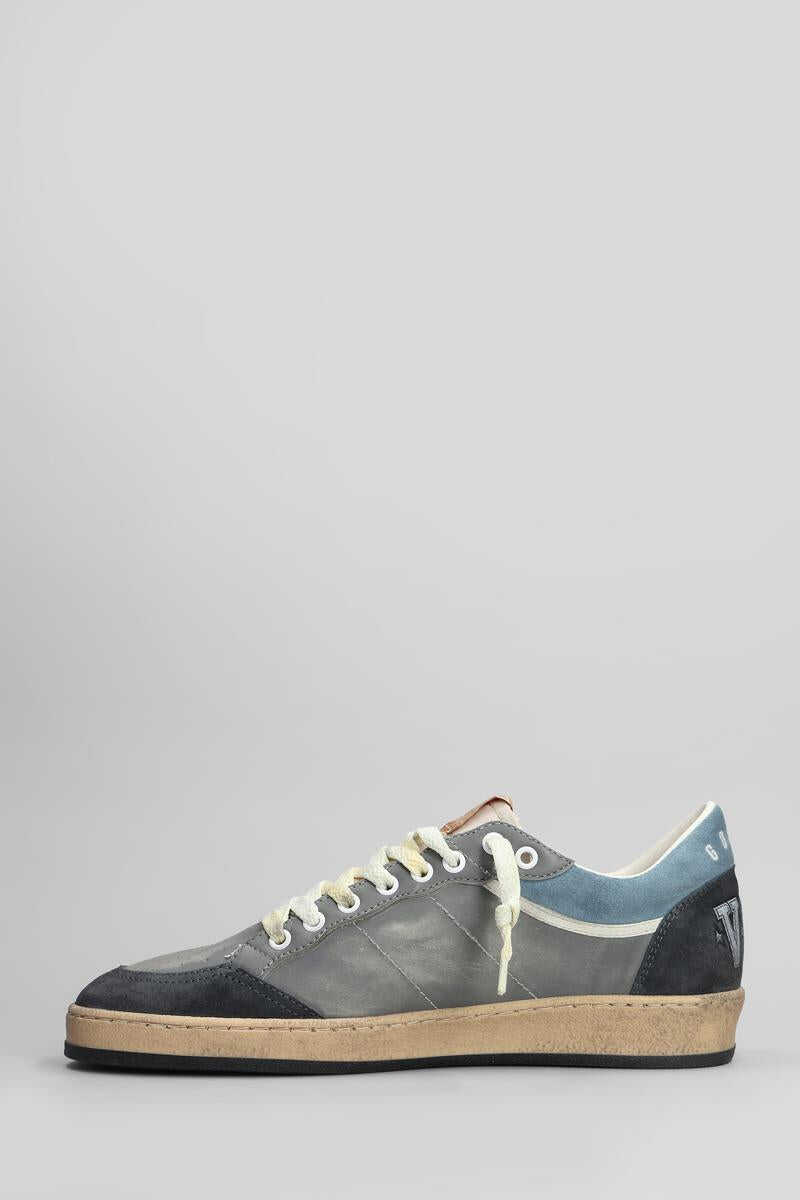 Ball Star Sneakers in grey suede and leather, round toe, laces, logo on upper tongue, perforated upper toe, leather star on side, logo back, vintage sole effect , 100% leather, Made in Italy