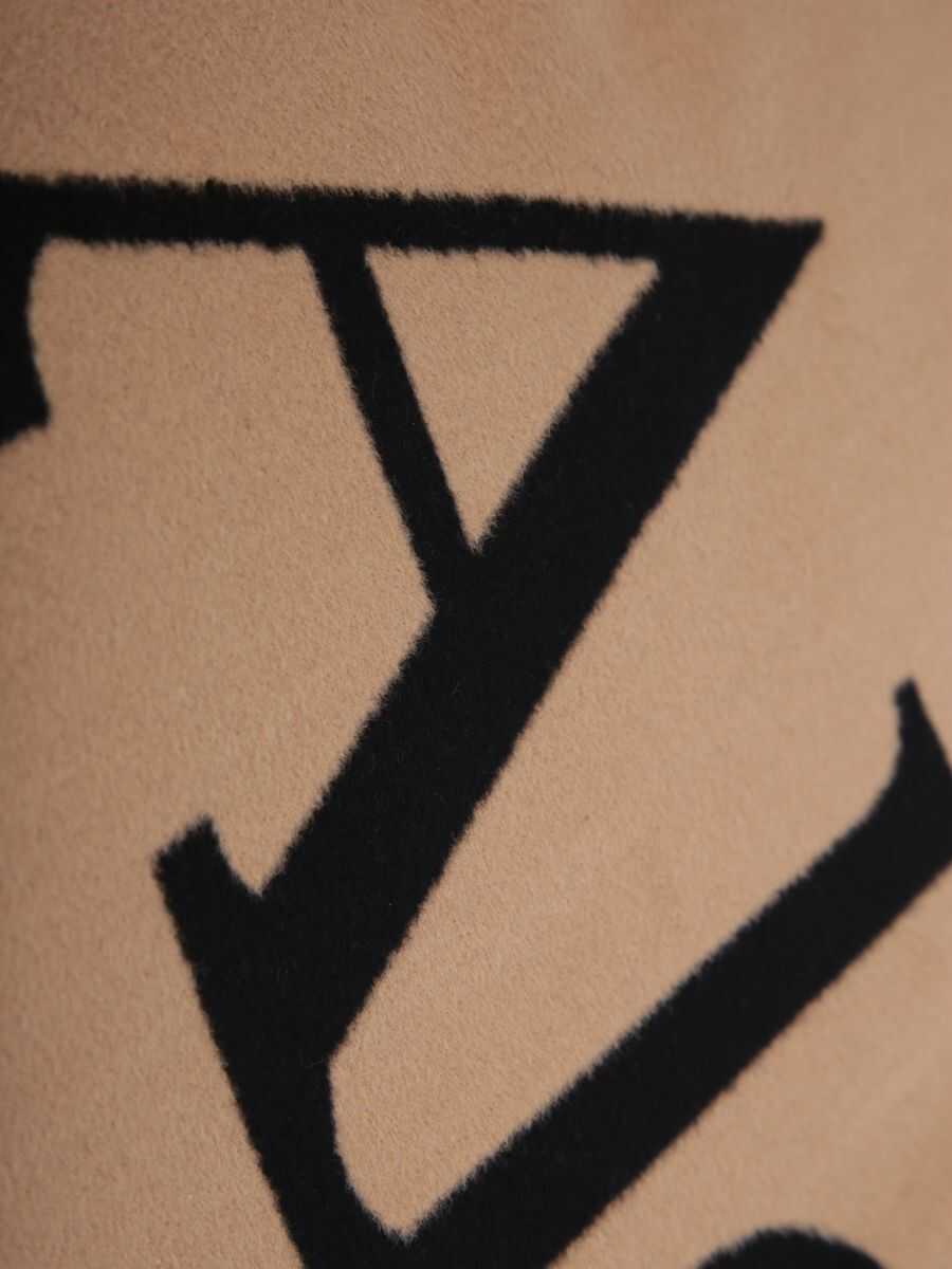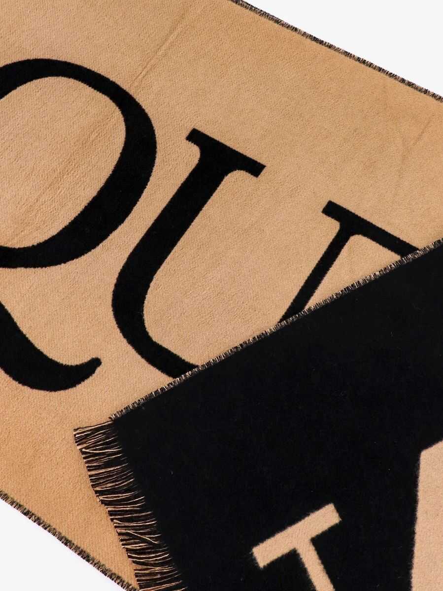 intarsia-knit logo scarf from Alexander McQueen featuring beige, black, cotton, intarsia-knit logo and rectangle shape.