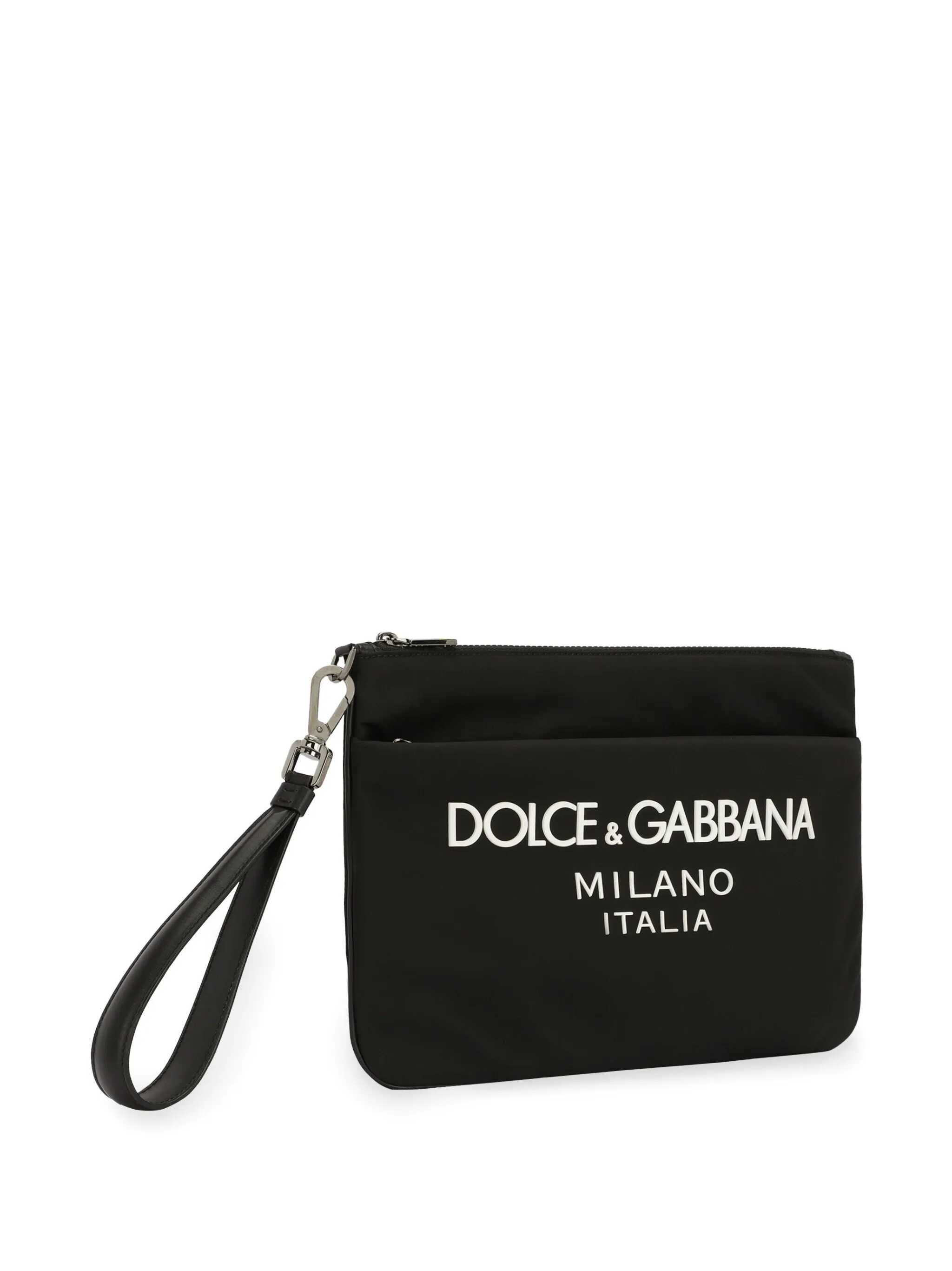 logo-print zipped wallet from DOLCE & GABBANA featuring black, logo print to the front, top zip fastening, wrist strap, front zip fastening pockets and main compartment.