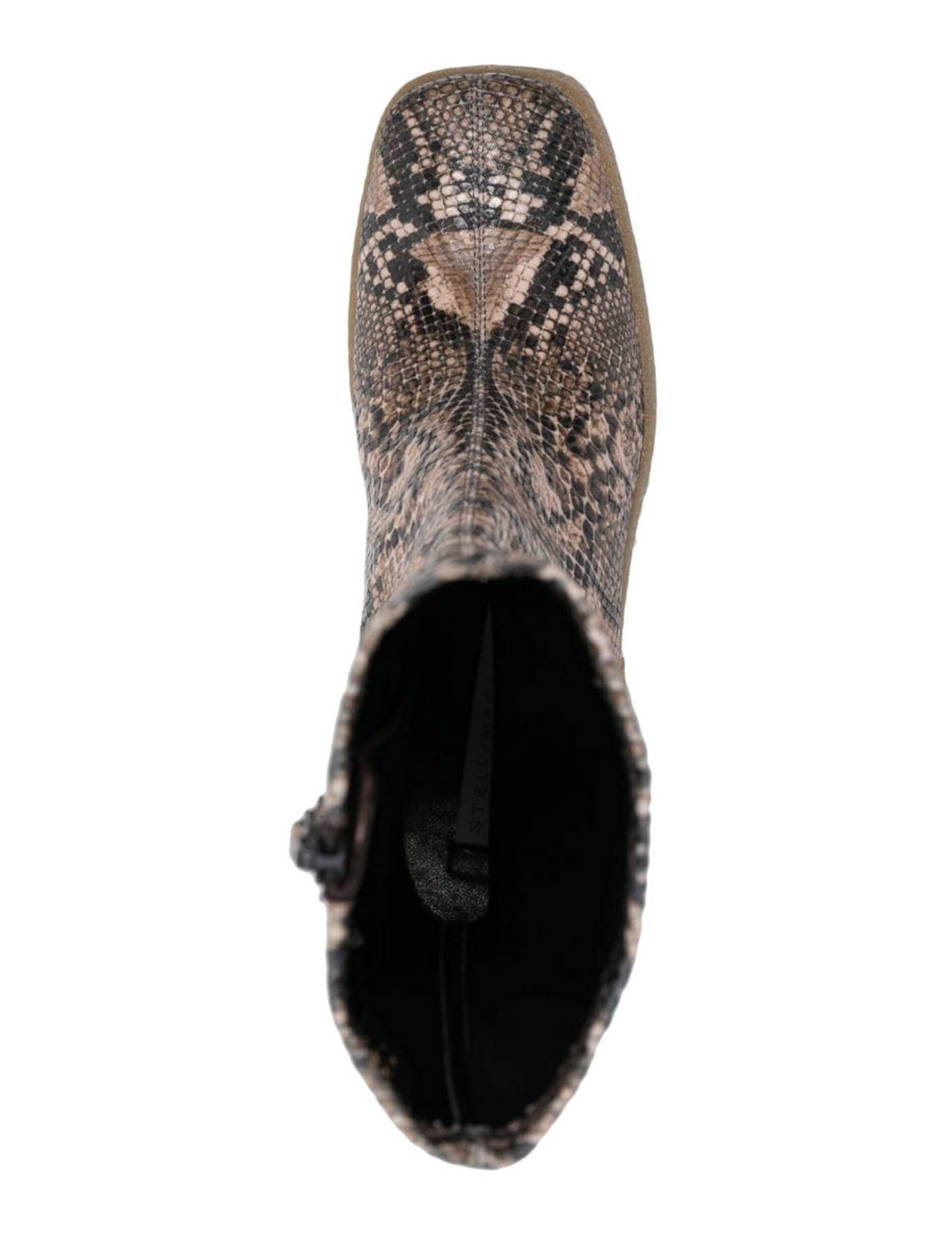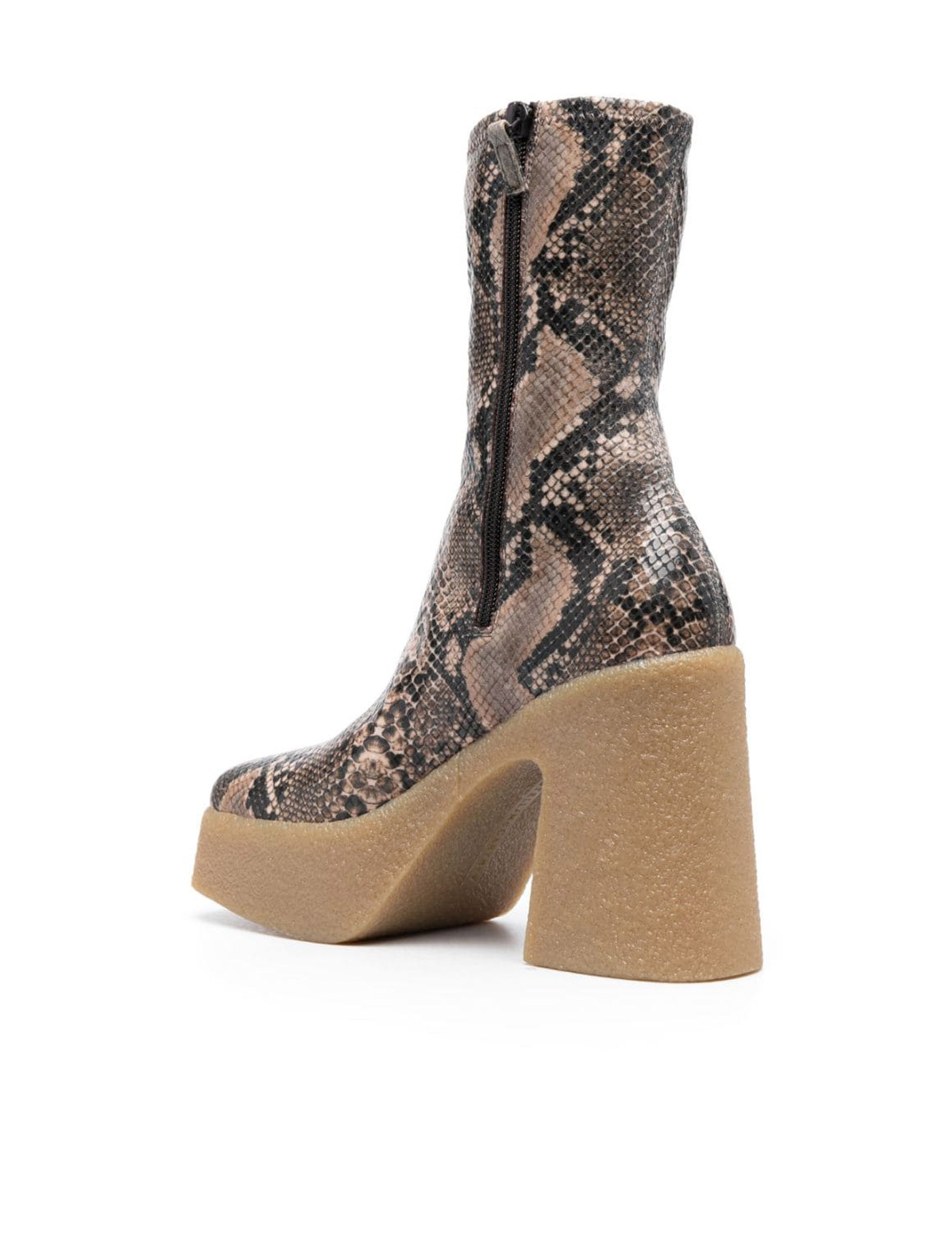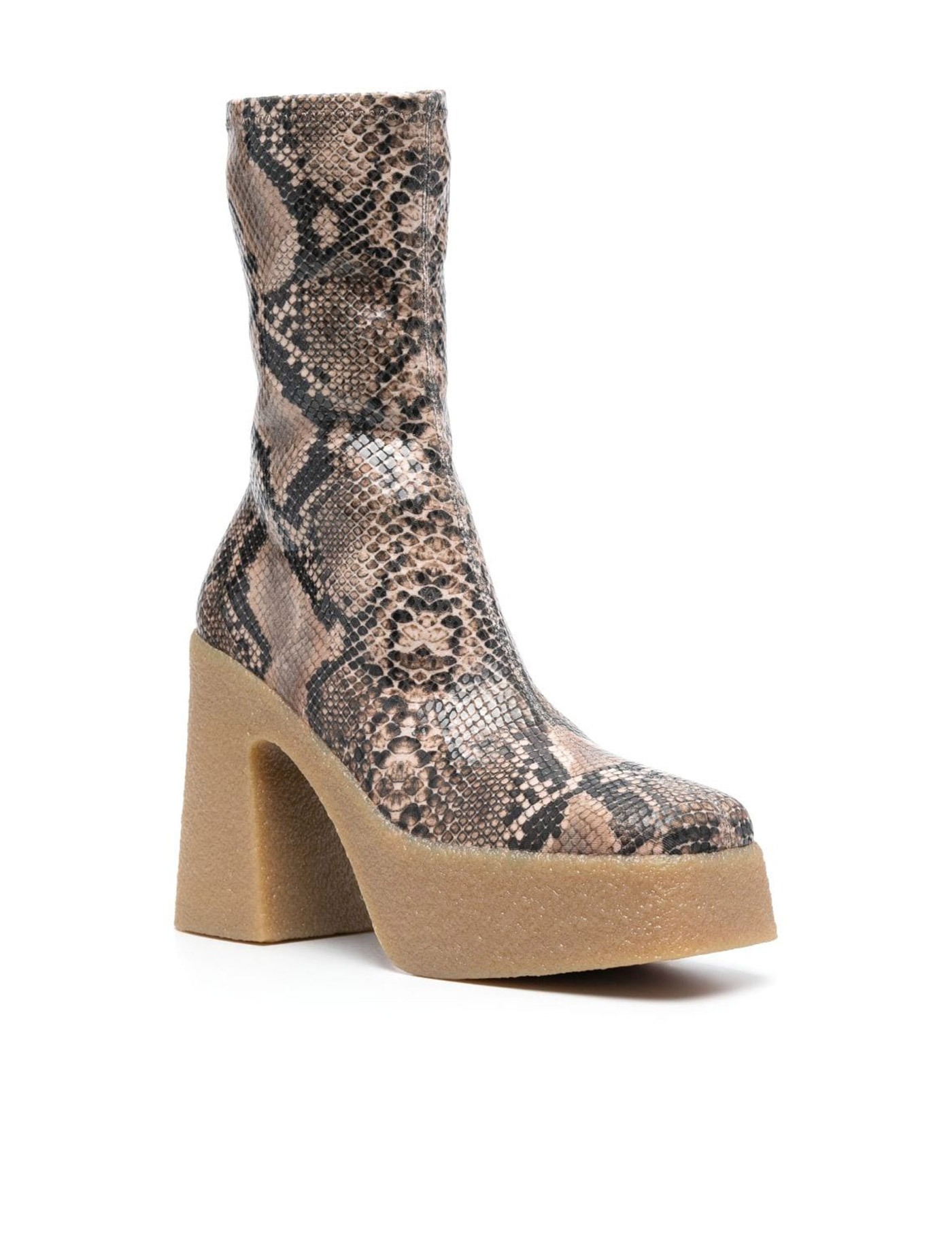 Stella McCartney ankle boots made of stretch Alter Python, characterized by the Skyla wedge and textured rubber platform. Square toe, side zip closure, fabric lining.