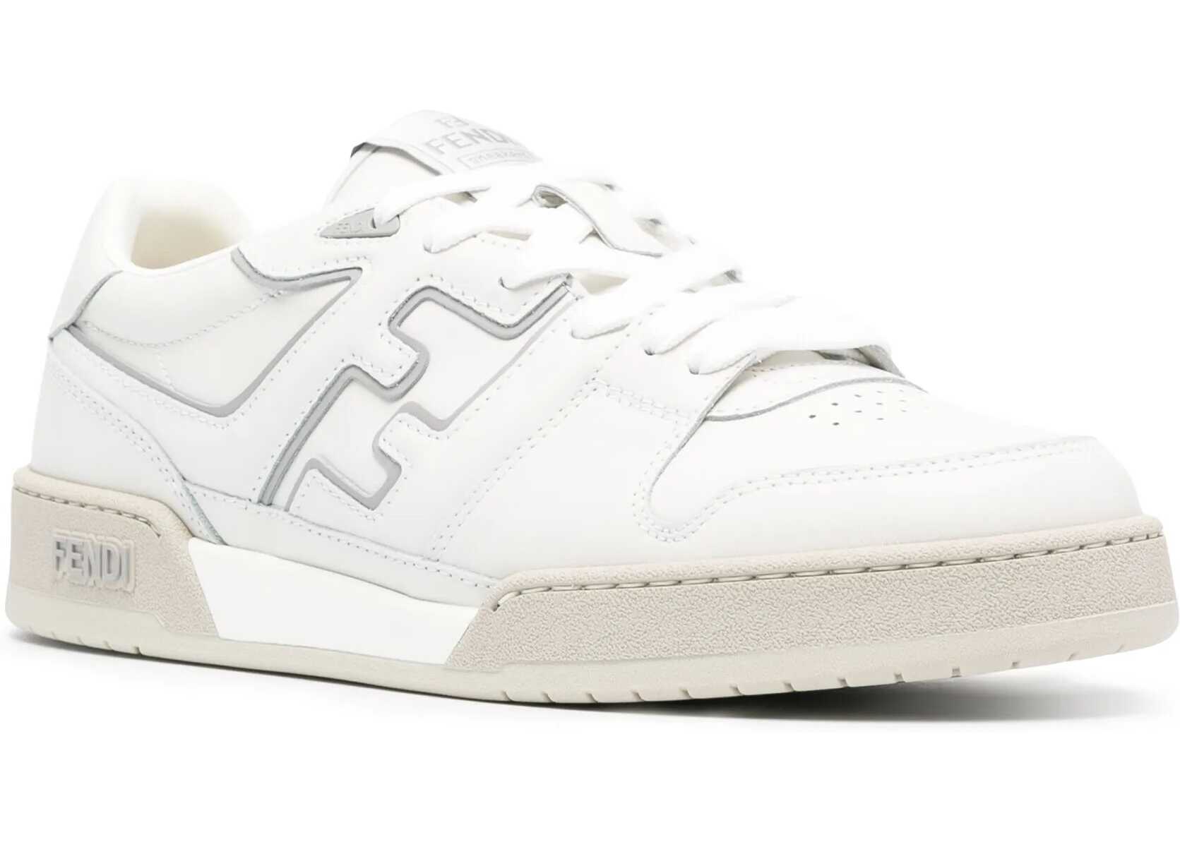 Fendi Match sneakers in white calfskin with grey inserts. They feature round and perforated toe, lace-up closure, side embossed FF logo and rubber sole with side Fendi lettering. Any leather imperfections are not to be considered manufacturing defects, but a peculiarity of the material.