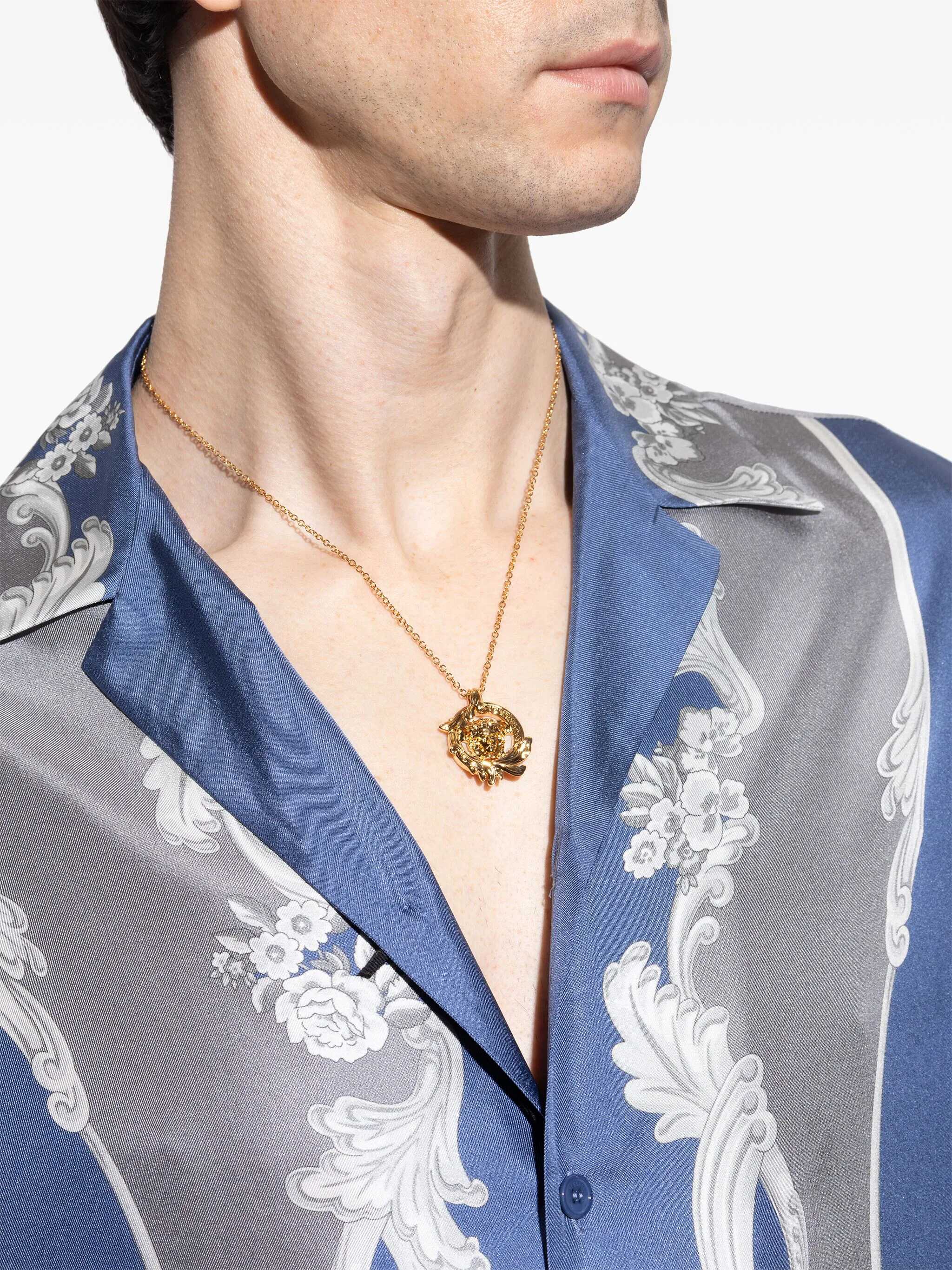 Gold-colored necklace. Medusa charm. Adjustable hook-and-eye closure.